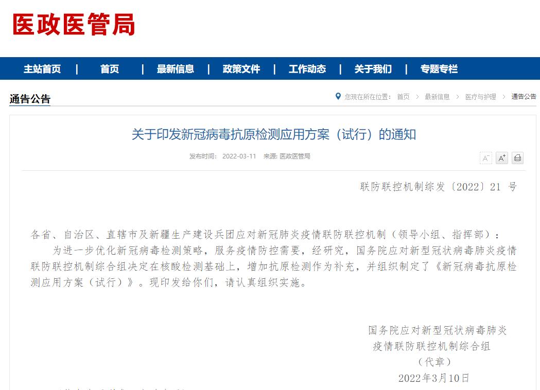 為進(jìn)一步優(yōu)化新冠病毒檢測(cè)策略,根據(jù)疫情防控需要,國(guó)務(wù)院聯(lián)防聯(lián)控機(jī)制綜合組研究決定,推進(jìn)“抗原篩查、核酸診斷”的監(jiān)測(cè)模式,在核酸檢測(cè)基礎(chǔ)上增加抗原檢測(cè)作為補(bǔ)充。近日,機(jī)制綜合組制定印發(fā)了《新冠病毒抗原檢測(cè)應(yīng)用方案(試行)》(以下簡(jiǎn)稱《方案》),要求各地認(rèn)真組織實(shí)施。