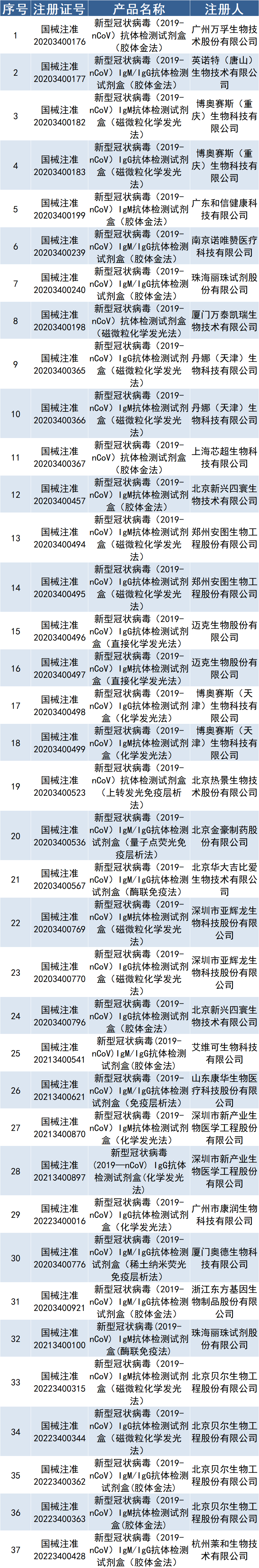 2020年1月以來,截至2022年4月14日,體外診斷行業(yè)已完成102個新型冠狀病毒檢測試劑盒(38個核酸檢測試劑,37個抗體檢測試劑,27個抗原檢測試劑),12個儀器設備,2個軟件,上述116個產(chǎn)品經(jīng)國家藥監(jiān)局審批獲準上市,助力疫情防控。