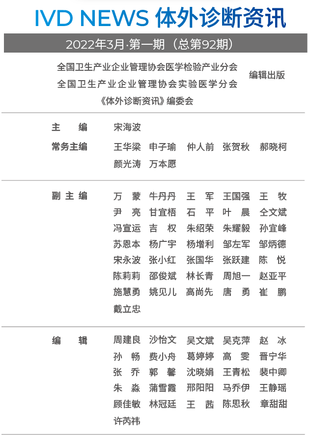 2022年第一期3月刊現(xiàn)已正式出刊,內(nèi)容涵蓋實驗醫(yī)學·體外診斷盛宴最新活動詳情,科技部對全國科技系統(tǒng)抗擊新冠肺炎疫情先進集體和個人的表彰,多家IVD知名企業(yè)一季度收購事件,近期IPO過會情況,近期行業(yè)相關部門發(fā)布的重要政策以及其他引起業(yè)內(nèi)人士廣泛關注的行業(yè)焦點。尤其值得注意的是,在咖言咖語板塊,收錄了宋海波會長關于中國體外診斷產(chǎn)業(yè)40年發(fā)展回顧的文章,該文通過記錄體外診斷40余年發(fā)展的歷史軌跡、人物、事件、企業(yè)的成長過往,立體的展示給大家今天的產(chǎn)業(yè)格局是多么的來之不易。40余年的深刻變革,重塑了中國人民的面貌,每個人都在這場偉大革命中逐漸找到了自己。發(fā)展無止境,改革無止境,體外診斷及其相關產(chǎn)業(yè)如何健康成長,規(guī)范運行,服務于改革開放大局,考驗著體外診斷同仁的勇氣和智慧。