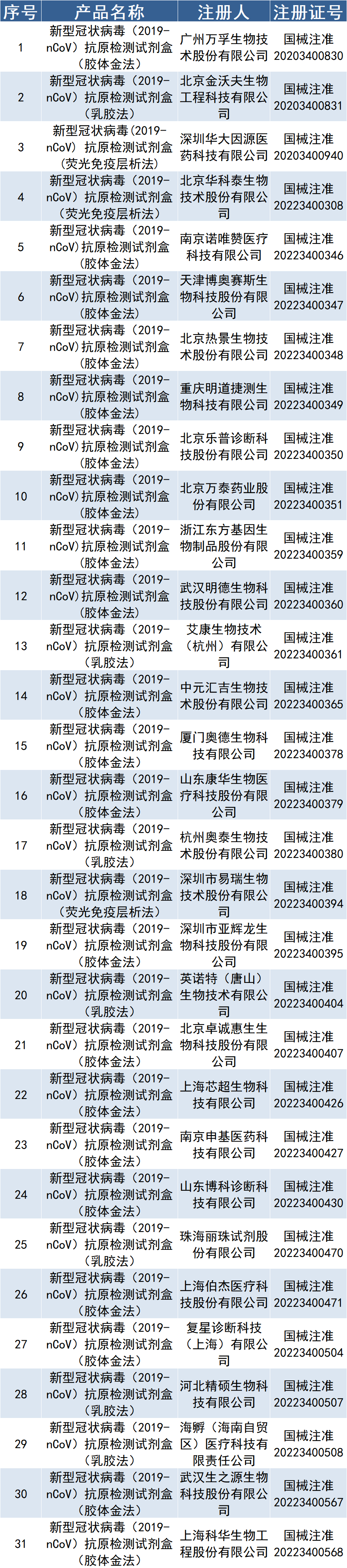 2020年1月以來,截至2022年5月6日,體外診斷行業(yè)已完成106個新型冠狀病毒檢測試劑盒(31個抗原檢測試劑,38個核酸檢測試劑,37個抗體檢測試劑),12個儀器設備,2個軟件,上述120個產品經國家藥監(jiān)局審批獲準上市,助力疫情防控。