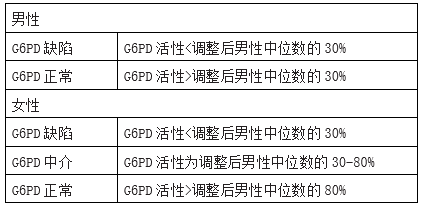 WHO于2016年10月發(fā)布了《葡萄糖-6-磷酸脫氫酶活性檢測體外診斷試劑指導原則》,該指南根據(jù)性別和葡萄糖-6-磷酸脫氫酶活性將人群劃分為正常、缺陷和中介(如表1),F(xiàn)將該指南對分析性能評估的要求概述如下。