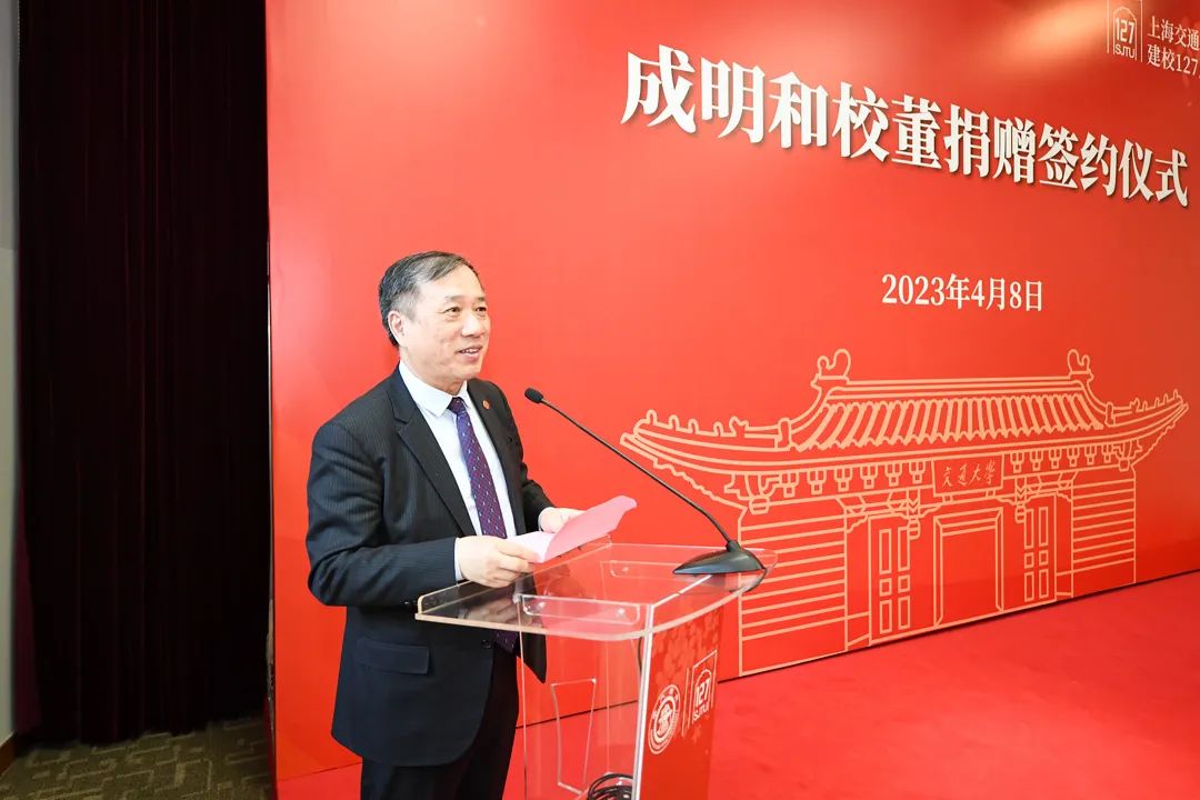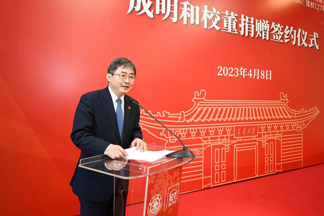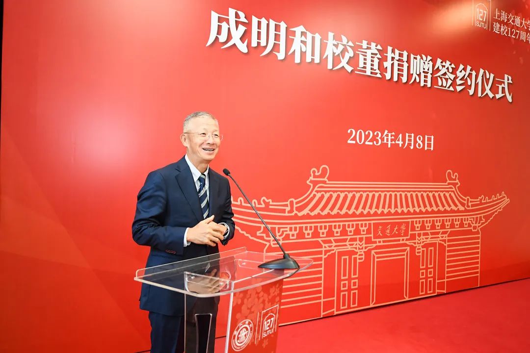 成明和深情講述了家族幾代人與交大的淵源,對(duì)母校的培育之恩表示感謝。他表示,他在母校度過(guò)了難以忘懷的大學(xué)歲月,在交大的所學(xué)所思,對(duì)他的事業(yè)發(fā)展產(chǎn)生了深遠(yuǎn)的影響。他表示,很高興為母校的人才培養(yǎng)貢獻(xiàn)力量,并祝福母校蓬勃發(fā)展,明日更加輝煌。