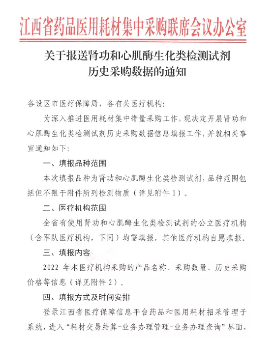 當(dāng)時(shí)筆者提出了“肝功能血脂試劑集采,腎功能心肌酶譜還會(huì)遠(yuǎn)嗎”的設(shè)想,結(jié)果僅僅過了一年半,果真如此,今天看到江西省發(fā)出通知又開始了腎功能和心肌酶的市場摸底,毫無疑問下一步就是要集采了。