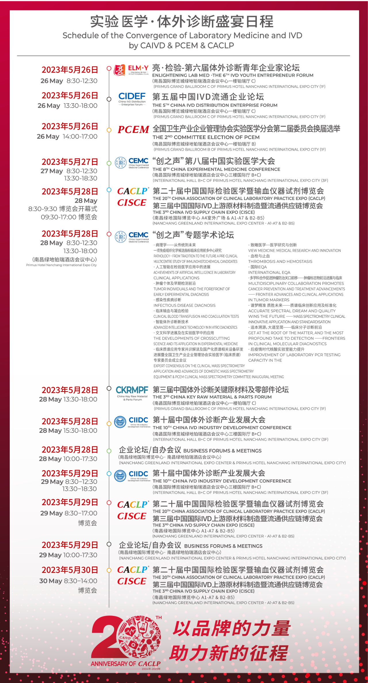 借第十屆中國(guó)體外診斷產(chǎn)業(yè)發(fā)展大會(huì)、“創(chuàng)之聲”第八屆中國(guó)實(shí)驗(yàn)醫(yī)學(xué)大會(huì)、第二十屆中國(guó)國(guó)際檢驗(yàn)醫(yī)學(xué)暨輸血儀器試劑博覽會(huì)、第三屆中國(guó)國(guó)際IVD上游原材料暨制造流通供應(yīng)鏈博覽會(huì)、第五屆中國(guó)IVD流通企業(yè)論壇、第三屆中國(guó)體外診斷關(guān)鍵原材料及零部件論壇之契機(jī),由全國(guó)衛(wèi)生產(chǎn)業(yè)企業(yè)管理協(xié)會(huì)醫(yī)學(xué)檢驗(yàn)產(chǎn)業(yè)分會(huì)主辦的“亮·檢驗(yàn)—第六屆體外診斷青年企業(yè)家論壇”將于2023年5月26日在南昌國(guó)際博覽城綠地鉑瑞酒店會(huì)議中心隆重舉行。