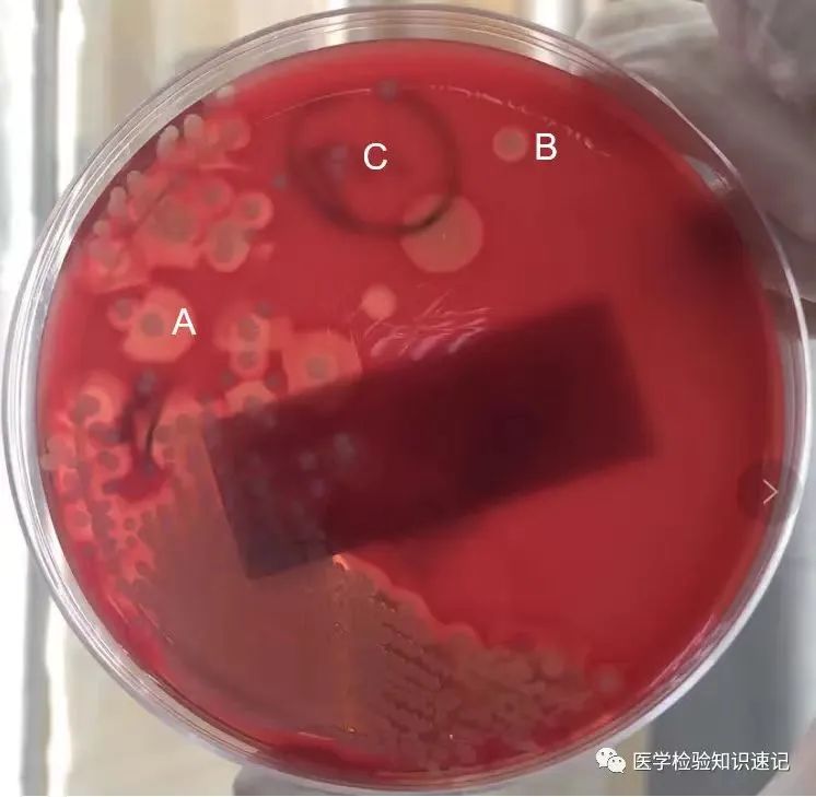 金黃色葡萄球菌營養(yǎng)要求不高,在普通培養(yǎng)基上生長良好,需氧或兼性厭氧,最適生長溫度37℃,最適生長pH7.4。平板上菌落厚、有光澤、圓形凸起,直徑1-2mm。血平板菌落周圍形成透明的溶血環(huán)。