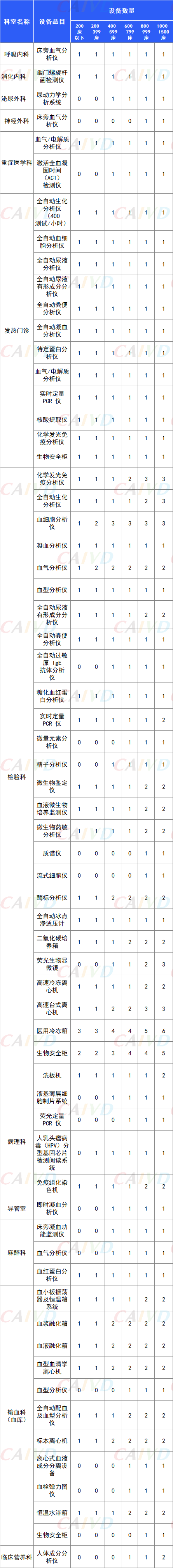 縣級綜合醫(yī)院設備配置標準(IVD)