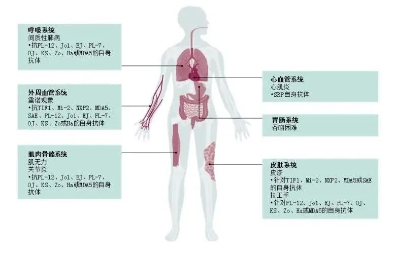 抗OJ抗體:抗異亮氨酰tRNA合成酶抗體,臨床表現(xiàn)為間質(zhì)性肺病,關(guān)節(jié)炎,雷諾病,機(jī)械工手,肌炎中少,皮肌炎更多。