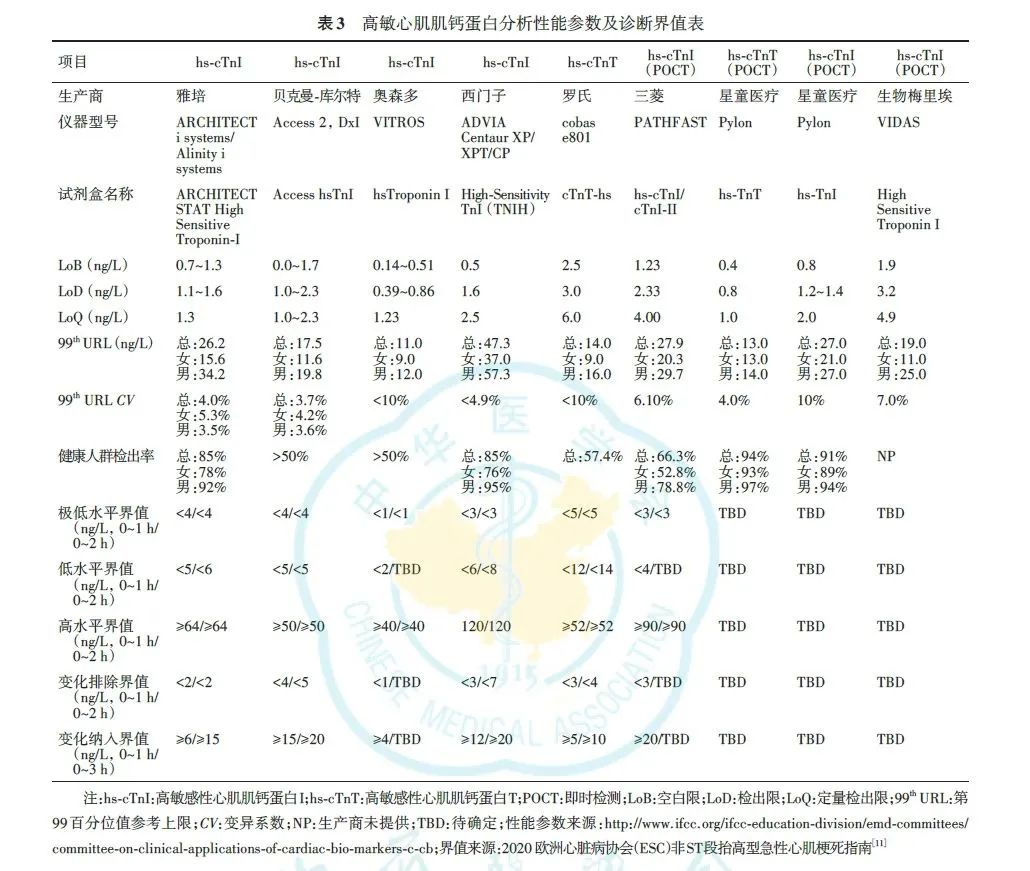 2.關(guān)于參考區(qū)間建立:第4版全球AMI通用定義仍建議將99th URL作為診斷AMI的cut-off值,建議hs-cTn檢測應按照不同性別分別設(shè)置。通常男性99th URL會高于女性,采用統(tǒng)一99th URL容易漏診女性AMI患者。con-cTn檢測設(shè)立男性、女性統(tǒng)一的99th URL。具備條件的實驗室可對新生兒等非成年人設(shè)立不同年齡段cTn參考值。
