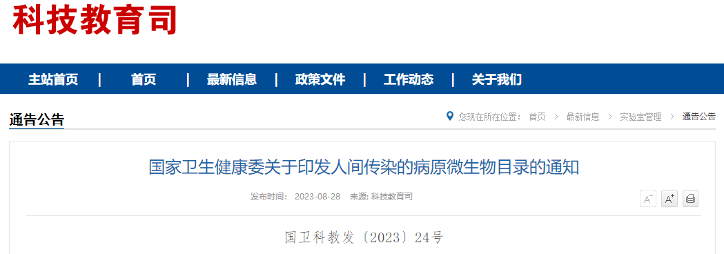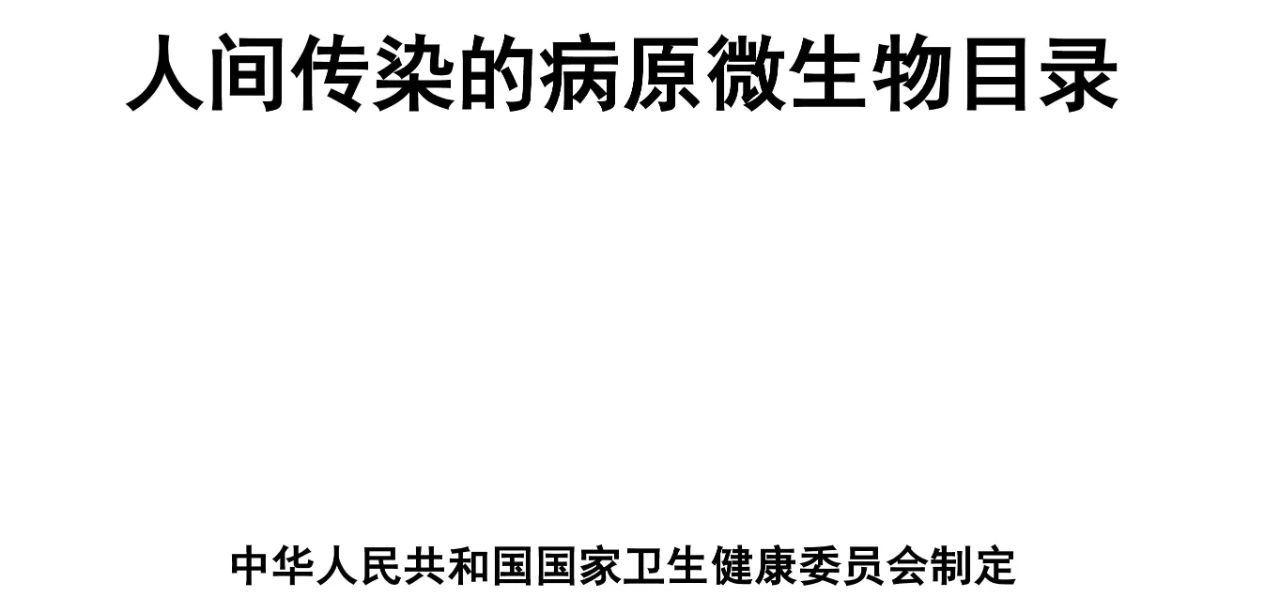 為加強與人體健康有關(guān)的病原微生物實驗室生物安全管理,規(guī)范病原微生物實驗活動、菌(毒)種和樣本運輸?shù)刃袨,根?jù)《中華人民共和國生物安全法》和《病原微生物實驗室生物安全管理條例》的規(guī)定,國家衛(wèi)健委在《人間傳染的病原微生物名錄》(衛(wèi)科教發(fā)〔2006〕15號)的基礎(chǔ)上,組織制定了《人間傳染的病原微生物目錄》。