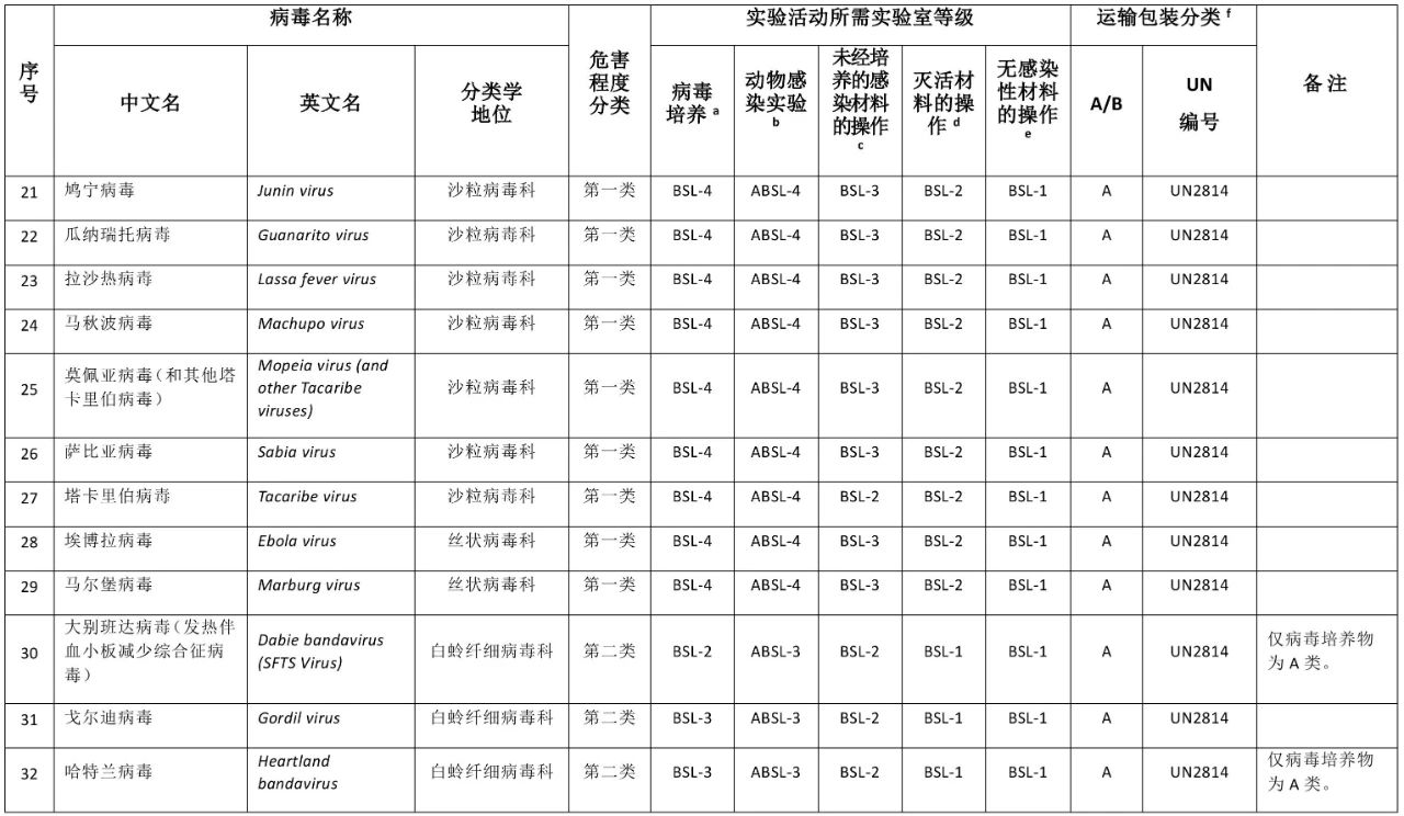 一是新增危害程度分類為第二類的病毒5種,新增危害程度分類為第三類的病毒7種。刪除危害程度分類為第二類的病毒5種,刪除危害程度分類為第三類的病毒6種,刪除危害程度分類為第四類的病毒1種。將5種病毒的危害程度分類由第二類降為第三類,相應(yīng)調(diào)整實驗活動和運輸管理要求。