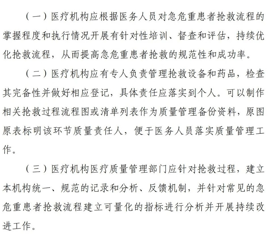 為更好地落實(shí)《醫(yī)療質(zhì)量安全核心制度要點(diǎn)》中急危重患者搶救制度和術(shù)前討論制度,提升醫(yī)療質(zhì)量,保障患者安全,國(guó)家衛(wèi)生健康委醫(yī)院管理研究所組織專家制定了《醫(yī)療機(jī)構(gòu)急危重患者搶救流程制定方法(專家共識(shí))》(2023年版),現(xiàn)推薦給醫(yī)療機(jī)構(gòu)參照使用。