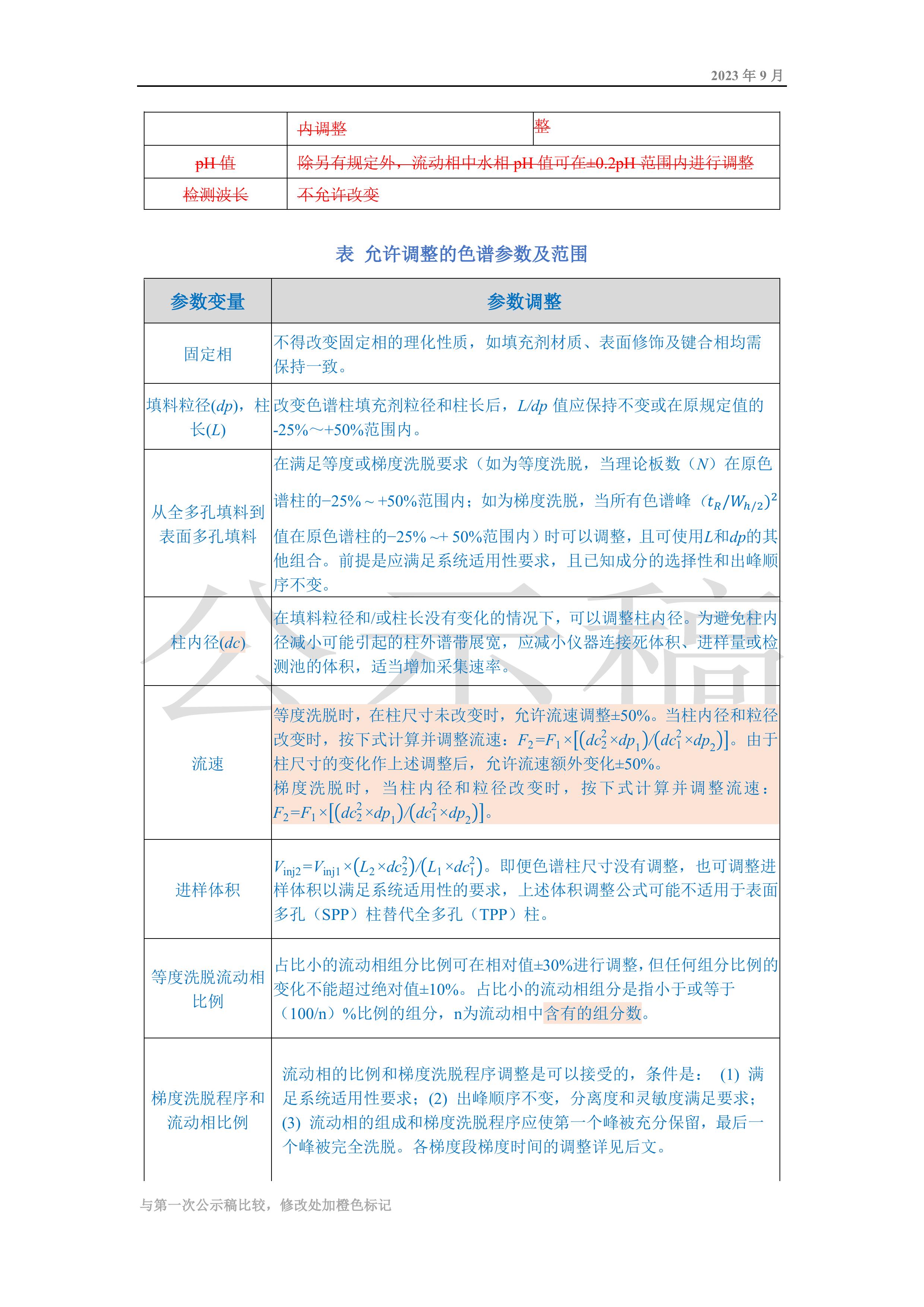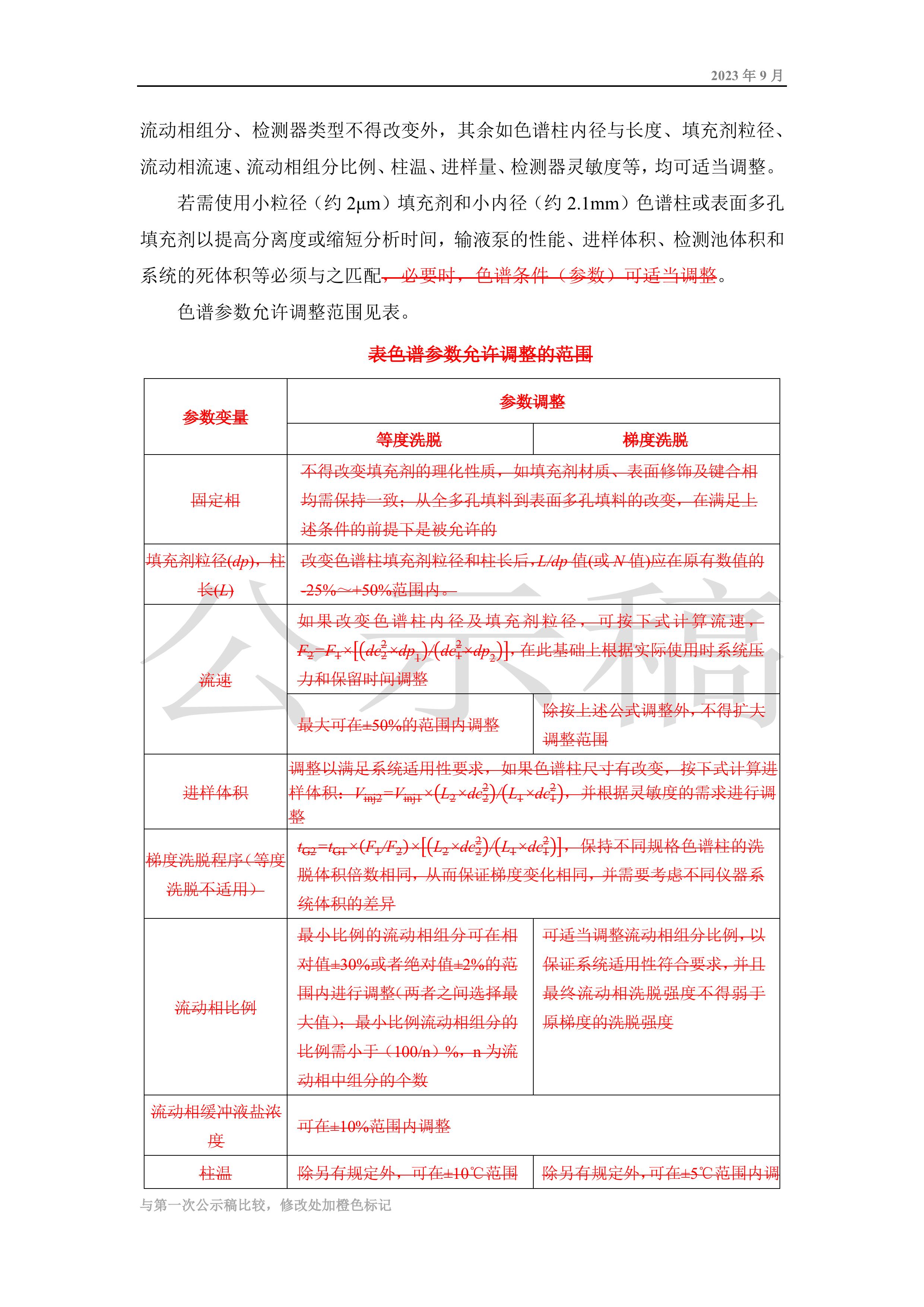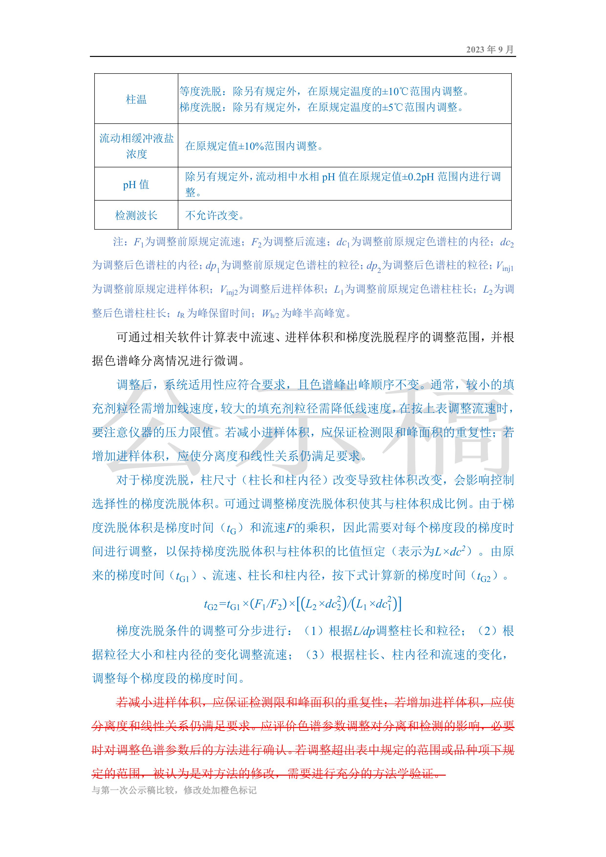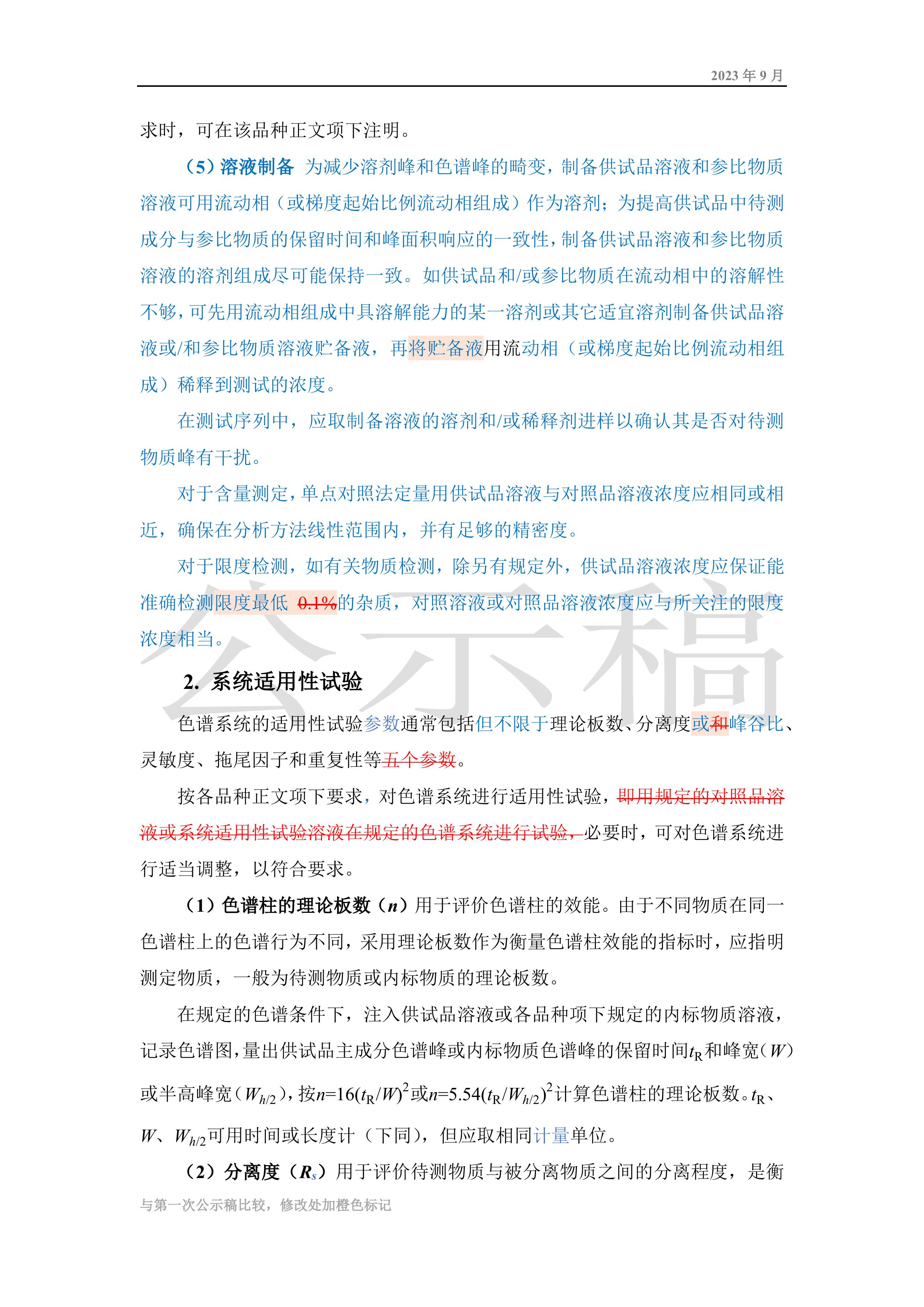 根據(jù)2023年4月0512高效液相色譜法首次公示稿的反饋意見和建議,國(guó)家藥典委員會(huì)相關(guān)專業(yè)委員會(huì)進(jìn)行了研討,在第一次公示稿的基礎(chǔ)上修訂了部分內(nèi)容,主要為允許調(diào)整的色譜參數(shù)及范圍表中流速的要求、分離度計(jì)算公式、 靈敏度要求等,并使文字表述更加規(guī)范。