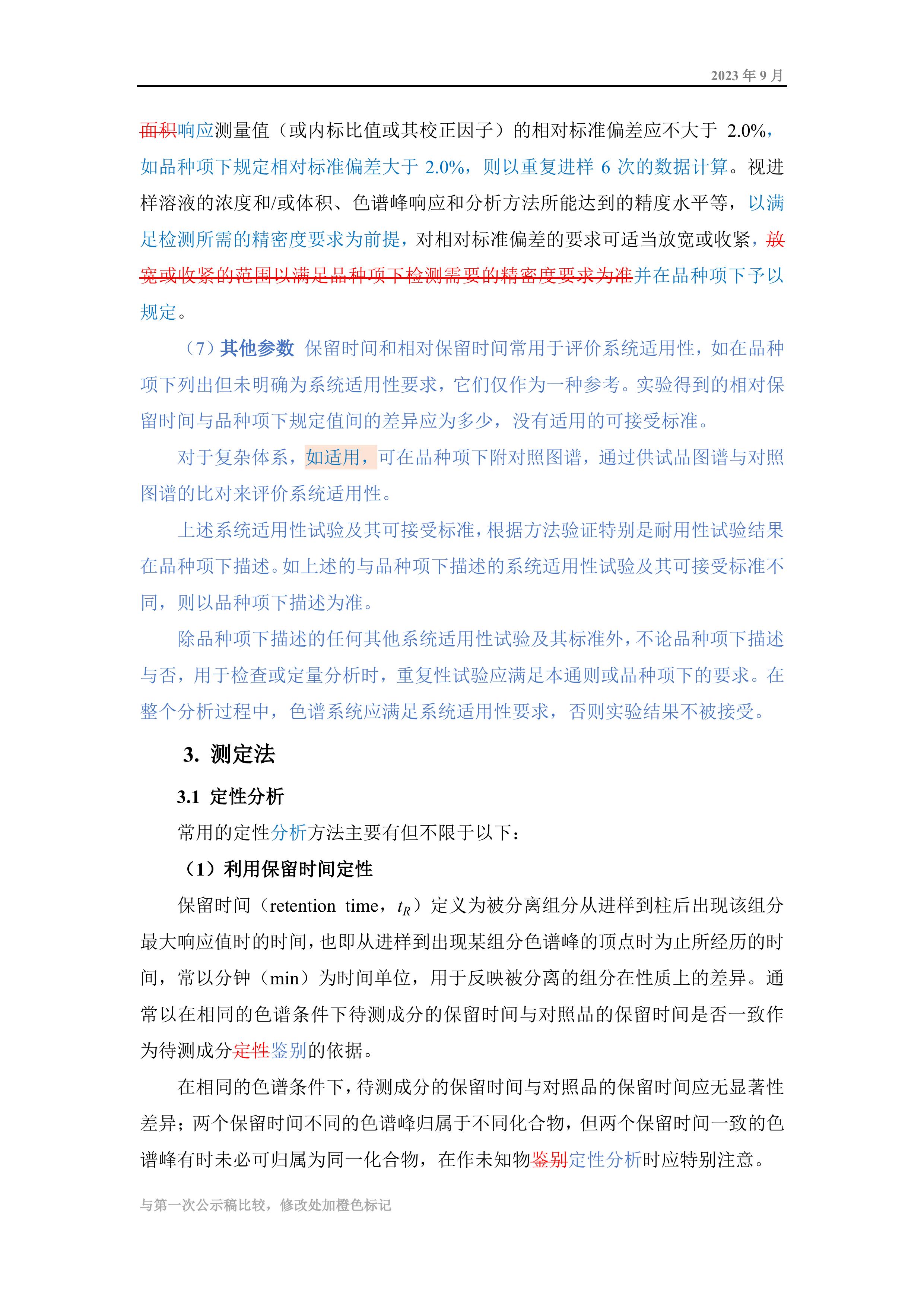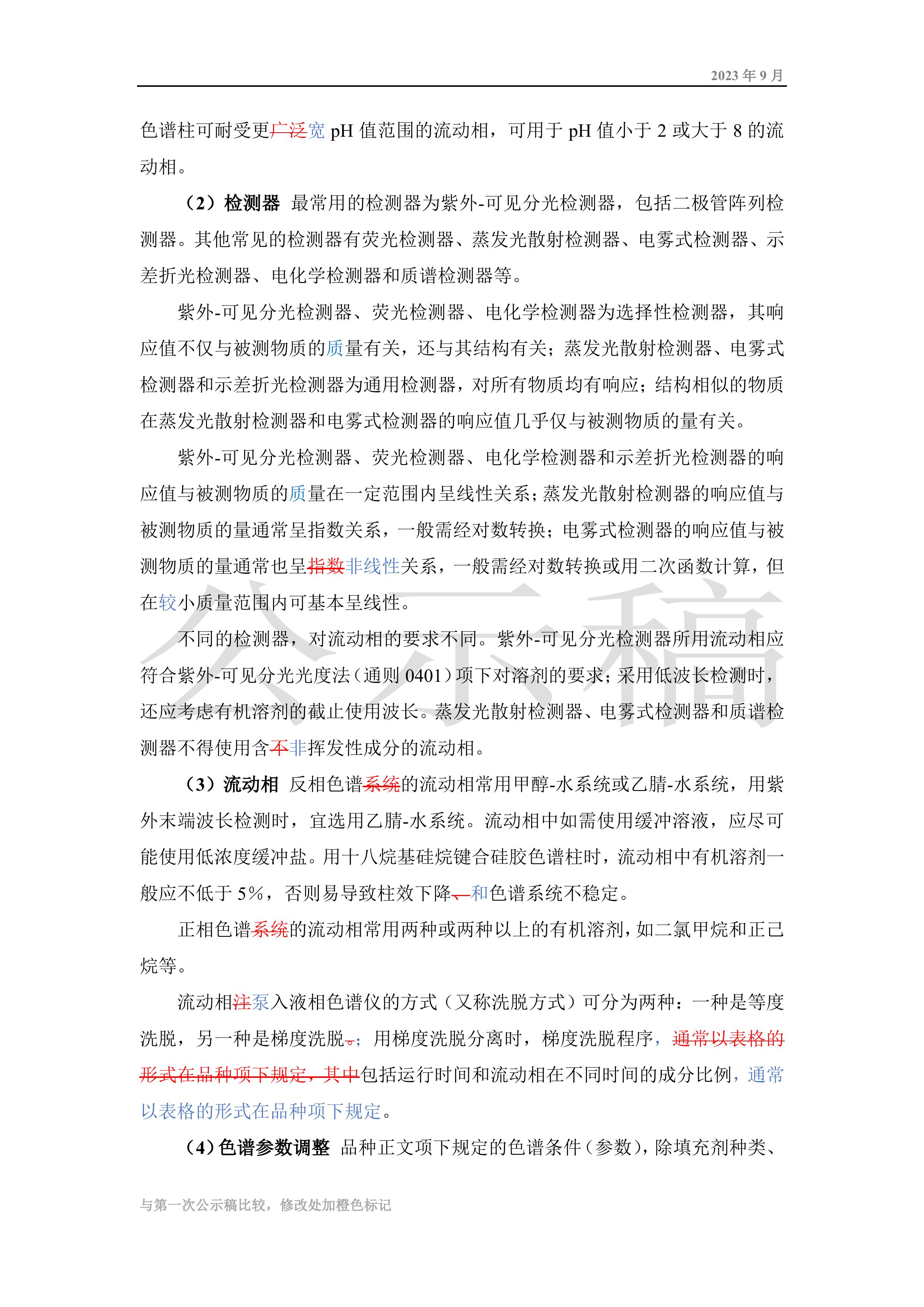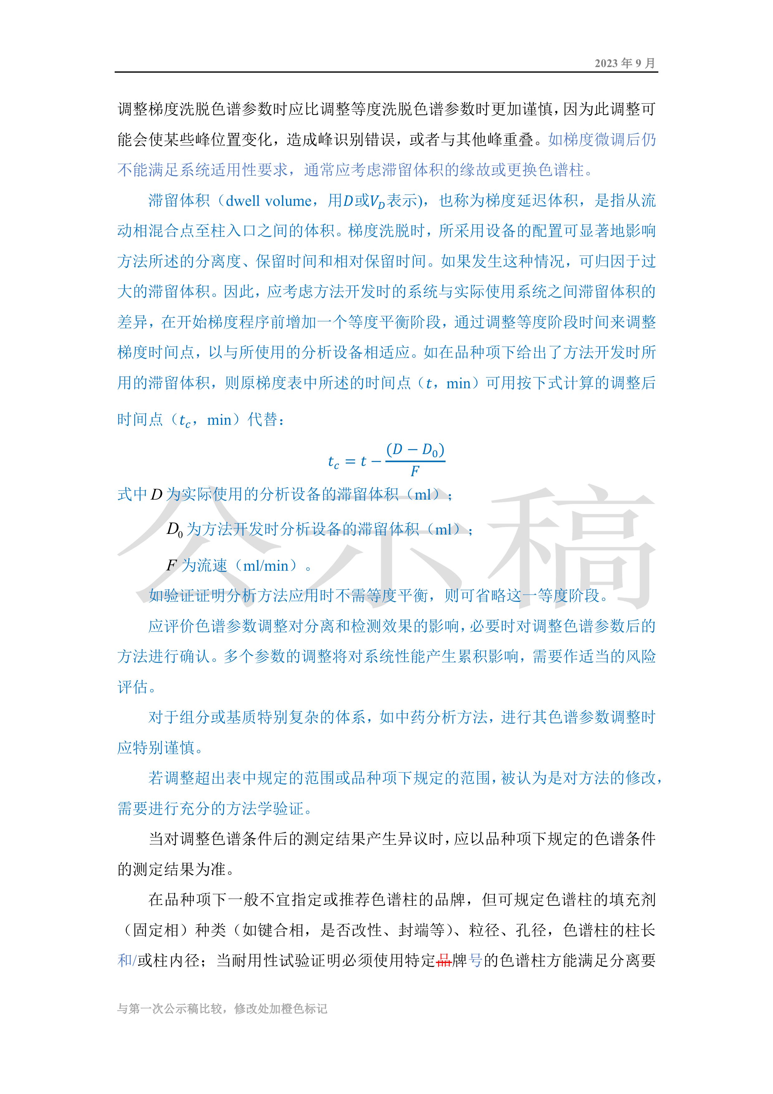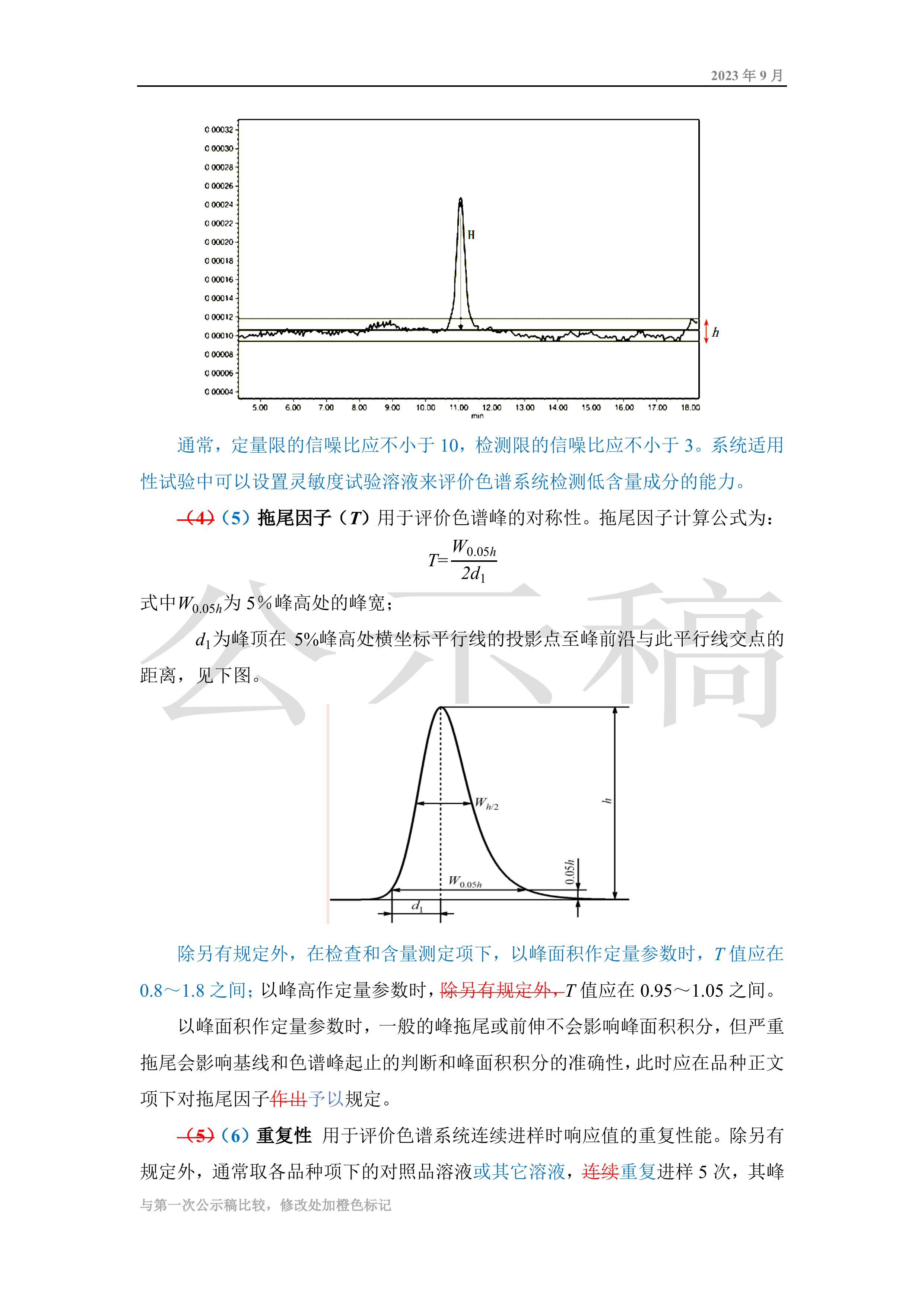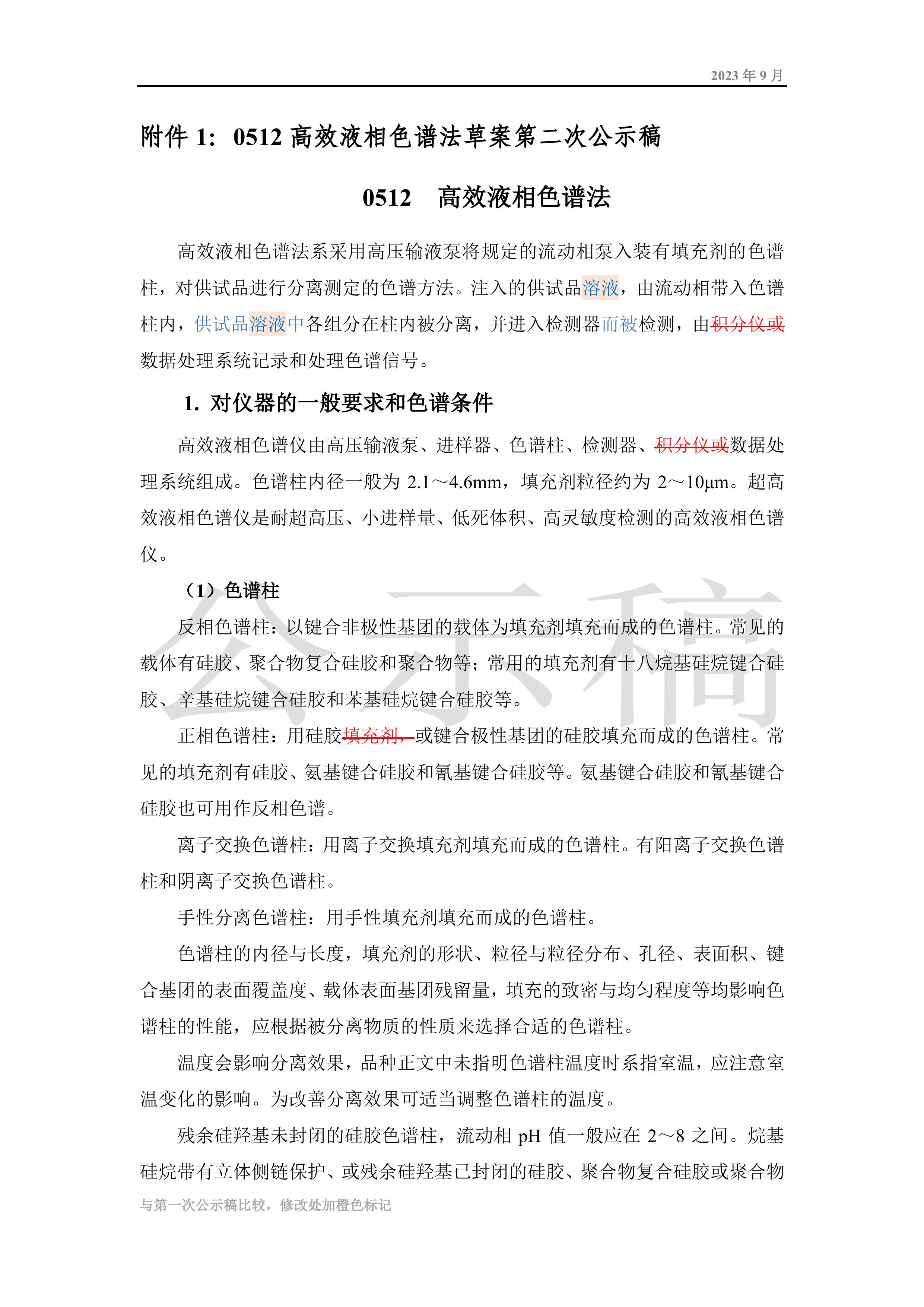 根據(jù)2023年4月0512高效液相色譜法首次公示稿的反饋意見和建議,國(guó)家藥典委員會(huì)相關(guān)專業(yè)委員會(huì)進(jìn)行了研討,在第一次公示稿的基礎(chǔ)上修訂了部分內(nèi)容,主要為允許調(diào)整的色譜參數(shù)及范圍表中流速的要求、分離度計(jì)算公式、 靈敏度要求等,并使文字表述更加規(guī)范。