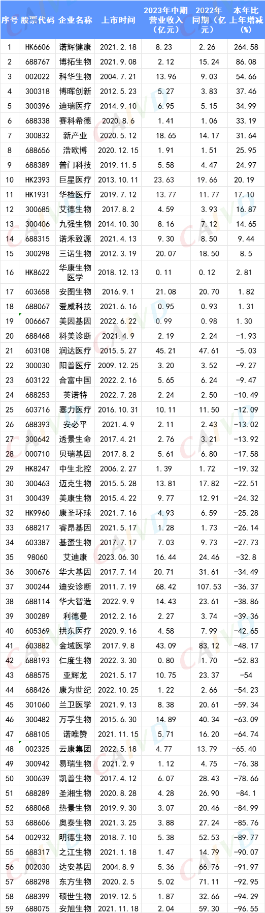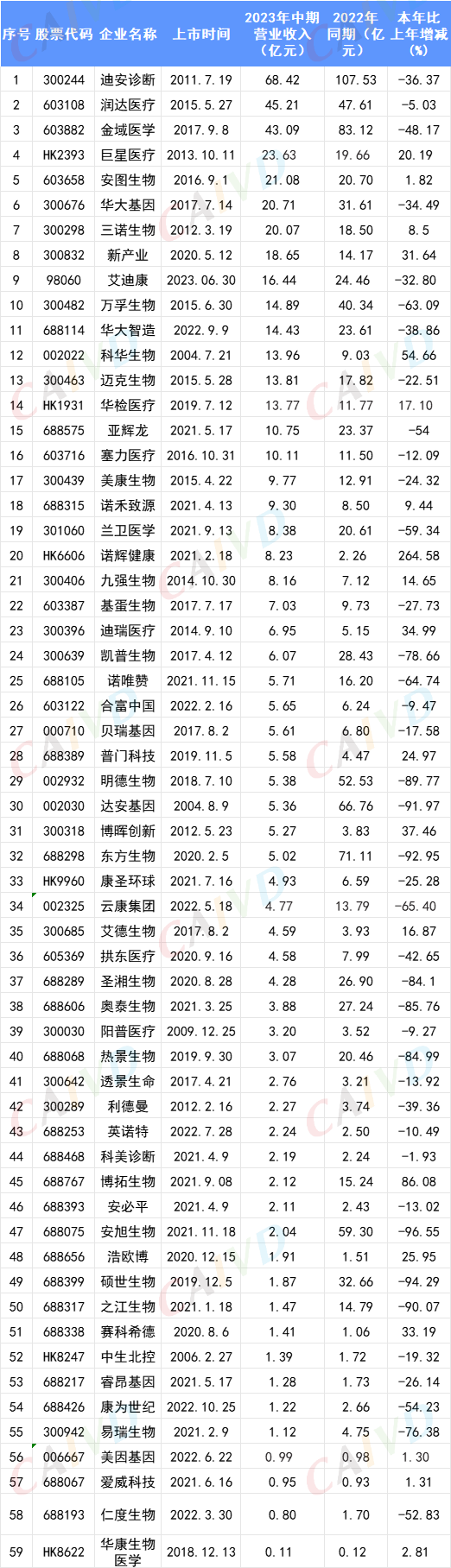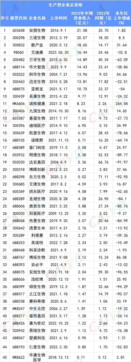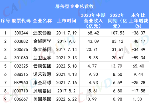 主營(yíng)體外診斷業(yè)務(wù)上市企業(yè)2023年上半年?duì)I業(yè)收入分析: