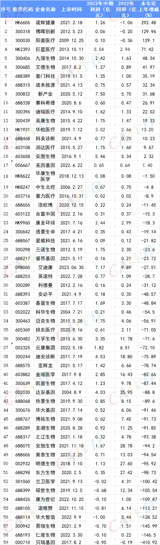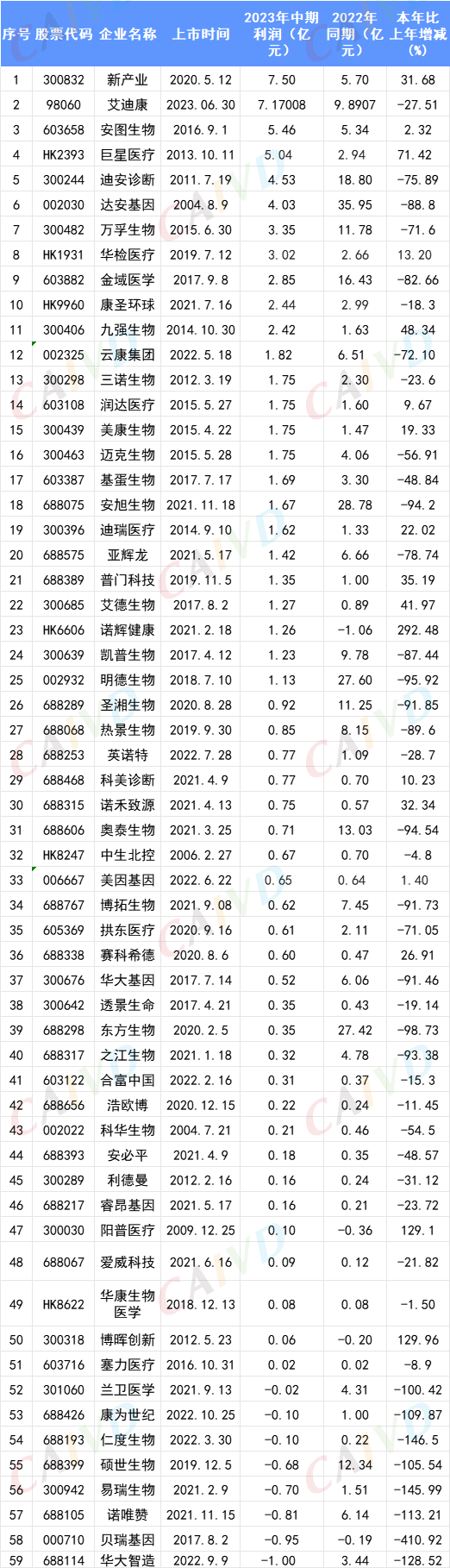 根據(jù)各企業(yè)半年報(bào)公布的數(shù)據(jù)整理出企業(yè)2023年上半年的利潤(rùn)情況,與2022年同期相比只有28.81%的企業(yè)利潤(rùn)增長(zhǎng),據(jù)年報(bào)披露,此情況與新冠相關(guān)的業(yè)務(wù)減少有關(guān),部分企業(yè)表示,雖然新冠業(yè)務(wù)減少了,但隨著疫情結(jié)束基礎(chǔ)檢驗(yàn)業(yè)務(wù)已慢慢回升至疫情前的狀態(tài)。