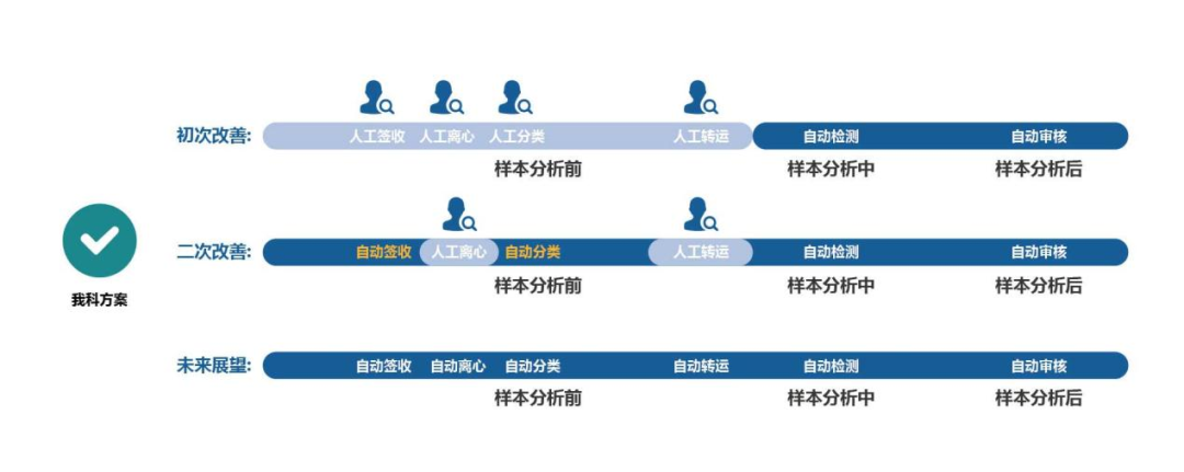 全流程質(zhì)量控制:除了增加檢驗設(shè)備,制定復(fù)檢規(guī)則,構(gòu)建智能審核庫,優(yōu)化檢驗流程等改進措施提高檢驗效率,中南醫(yī)院醫(yī)學(xué)檢驗科目前正嘗試實行全流程質(zhì)量控制,合理布局員工步行路徑和樣本流轉(zhuǎn)距離,最大程度釋放人力,實現(xiàn)高效運行和管理。