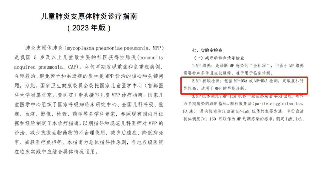 由于肺炎支原體感染臨床癥狀和其他呼吸道病原體感染癥狀相似,且易出現(xiàn)混合感染,所以即使患者出現(xiàn)發(fā)燒、咳嗽等癥狀,一般也很難判斷是否感染肺炎支原體。目前,醫(yī)院對(duì)于肺炎支原體的主要檢測(cè)方法是免疫學(xué)檢測(cè)和核酸檢測(cè),但由于免疫學(xué)檢測(cè)存在“窗口期”,且敏感性差,容易出現(xiàn)假陰性,造成臨床診斷偏頗,耽誤患者診治,所以目前不被專(zhuān)家推薦使用。核酸檢測(cè)因靈敏度好,特異性高,在疾病不同時(shí)期均有較高檢出率等特點(diǎn),已成為呼吸道感染診斷的主要方法!秲和窝字гw肺炎診療指南(2023年版)》也明確提出,核酸檢測(cè)由于靈敏度和特異性高,適用于肺炎支原體肺炎的早期診斷。