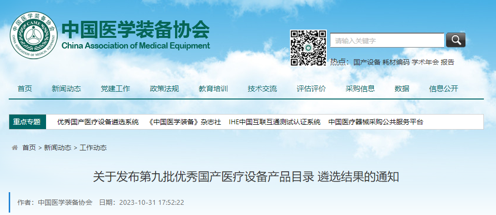 中國(guó)醫(yī)學(xué)裝備協(xié)會(huì)完成了第九批優(yōu)秀國(guó)產(chǎn)醫(yī)療設(shè)備產(chǎn)品目錄遴選工作,遴選品目包括體外膜肺氧合設(shè)備、超聲內(nèi)窺鏡系統(tǒng)、嬰兒頭部位置磁共振成像系統(tǒng)、人工智能輔助影像診斷產(chǎn)品(骨折)、乳腺活檢旋切取樣設(shè)備、近紅外腦氧飽和度監(jiān)護(hù)儀、無(wú)創(chuàng)血液動(dòng)力學(xué)監(jiān)測(cè)系統(tǒng)、高流量呼吸濕化治療儀、移動(dòng)空氣滅菌設(shè)備(紫外線空氣消毒機(jī))、步態(tài)訓(xùn)練與評(píng)估系統(tǒng)、內(nèi)熱式針灸治療儀、基因測(cè)序儀(二代)、心電圖機(jī)(12-CH)、動(dòng)態(tài)心電圖機(jī)(Holter)、醫(yī)用電子直線加速器、γ-射線立體定向治療系統(tǒng)、高強(qiáng)度聚焦超聲腫瘤治療系統(tǒng)、數(shù)字減影血管造影(DSA)設(shè)備、清洗消毒設(shè)備(壓力蒸汽滅菌消毒設(shè)備、全自動(dòng)清洗消毒設(shè)備、脈動(dòng)真空清洗消毒設(shè)備、環(huán)氧乙烷滅菌設(shè)備、過(guò)氧化氫低溫等離子滅菌設(shè)備、軟式內(nèi)鏡清洗消毒設(shè)備、翻蓋式全自動(dòng)軟式內(nèi)鏡清洗消毒設(shè)備、超聲波清洗機(jī))、化學(xué)發(fā)光免疫分析儀(全自動(dòng)、小型全自動(dòng)、單人份、便攜式4個(gè)子品目)、全自動(dòng)酶聯(lián)免疫分析儀(微板)、冷凍消融設(shè)備(腫瘤)、超聲骨刀、SPECT、數(shù)字胃腸X線機(jī)、口腔CT設(shè)備、心肺復(fù)蘇機(jī)、醫(yī)用制氧機(jī)、超聲光散射乳腺診斷系統(tǒng)、康復(fù)設(shè)備(定位牽引系統(tǒng)、振動(dòng)排痰系統(tǒng)、吞咽神經(jīng)和電刺激儀、空氣波壓力治療儀、激光磁場(chǎng)理療儀、脊柱定位減壓系統(tǒng))、眼底照相機(jī)、飛行時(shí)間質(zhì)譜儀、實(shí)時(shí)熒光定量PCR儀(全自動(dòng)、便攜式)、全自動(dòng)核酸提取儀、全自動(dòng)血型分析儀。