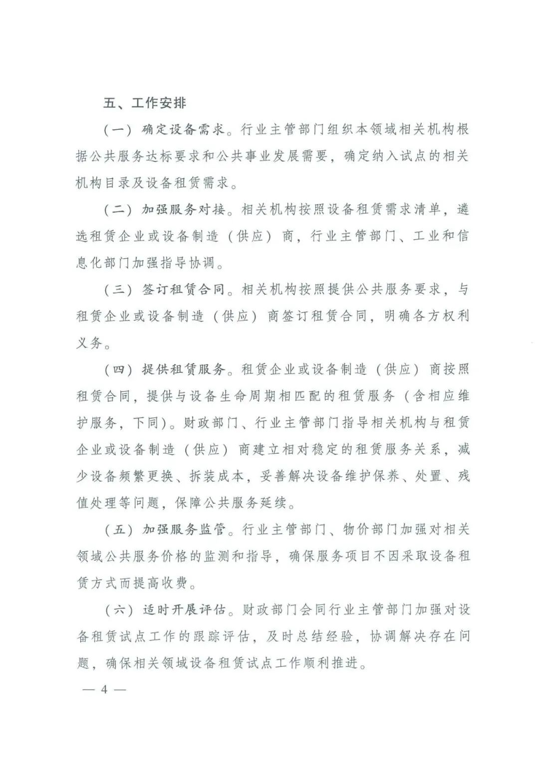 5、通知強(qiáng)調(diào),相關(guān)機(jī)構(gòu)按規(guī)定落實(shí)設(shè)備租賃資金來(lái)源,不得形成政府隱性債務(wù)風(fēng)險(xiǎn)。