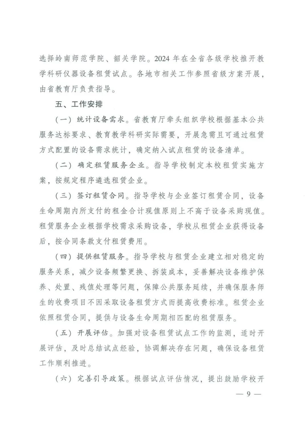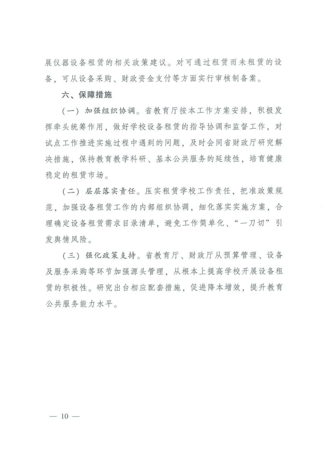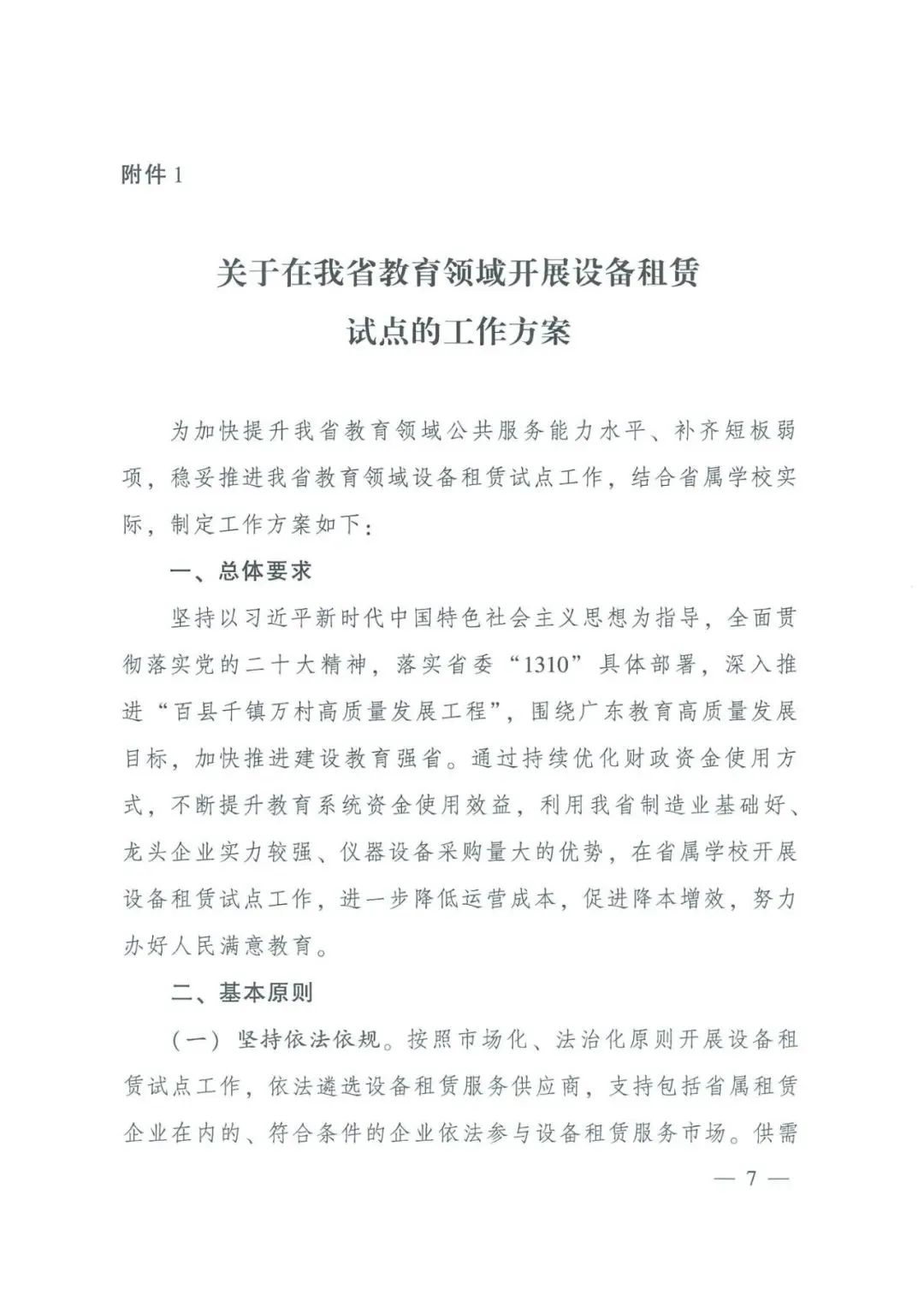 6、試點(diǎn)工作從全省公立學(xué)校、科研機(jī)構(gòu)、衛(wèi)生醫(yī)療機(jī)構(gòu)開始推進(jìn),通知還鼓勵(lì)其他特定領(lǐng)域參照省級(jí)試點(diǎn)方案推進(jìn)本領(lǐng)域設(shè)備租賃試點(diǎn)工作。