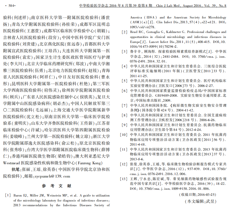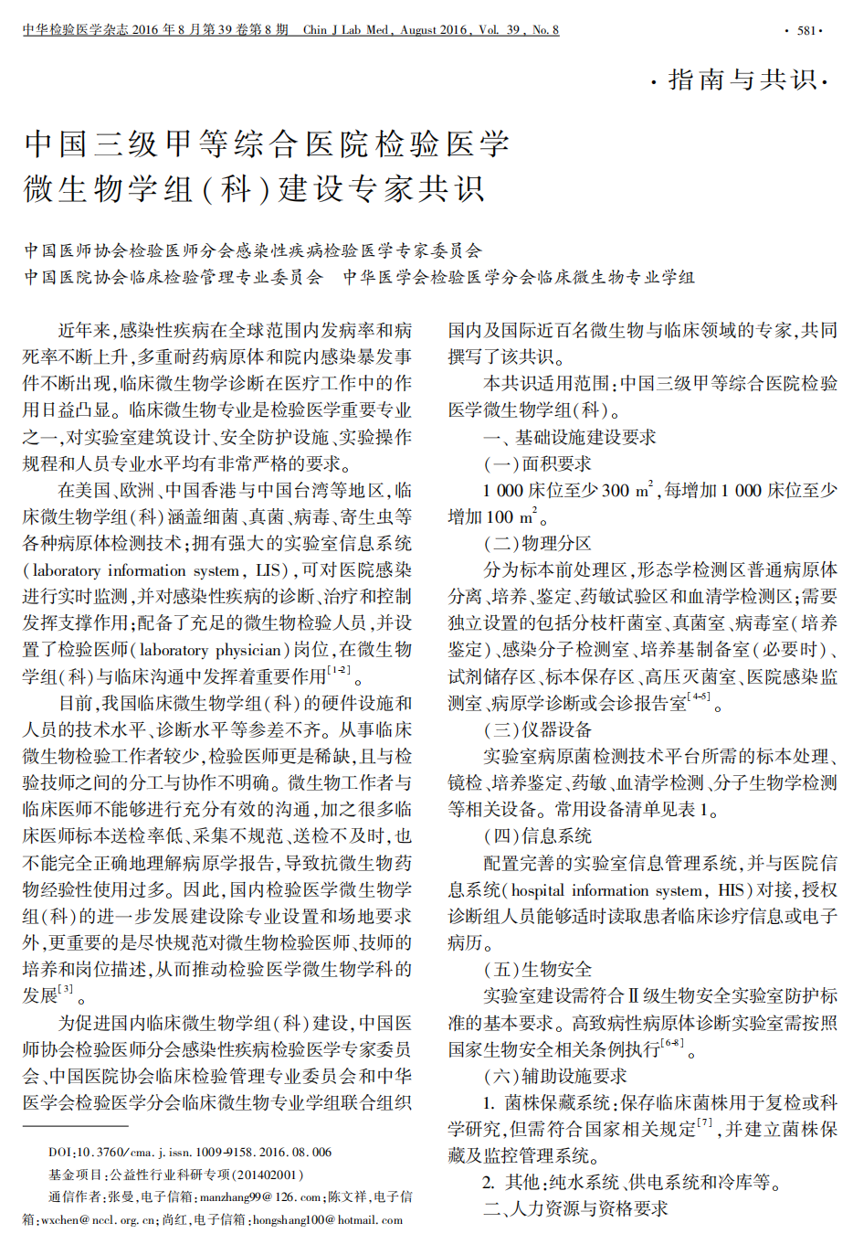 中國(guó)三級(jí)甲等綜合醫(yī)院檢驗(yàn)醫(yī)學(xué)微生物學(xué)組(科)建設(shè)專家共識(shí)