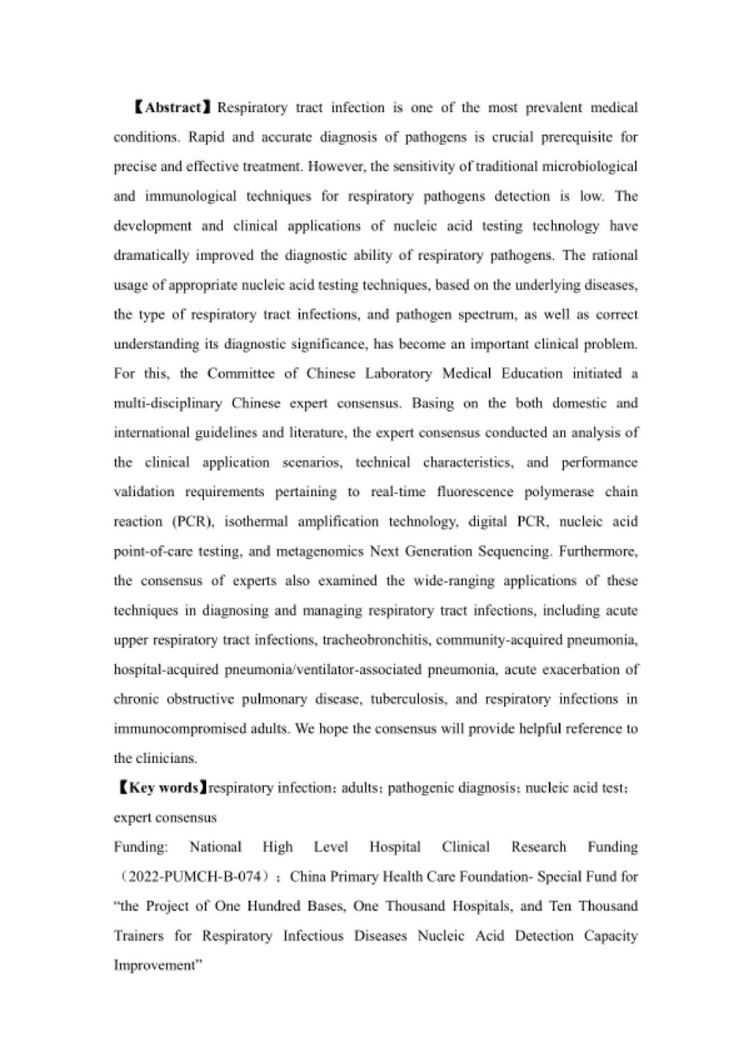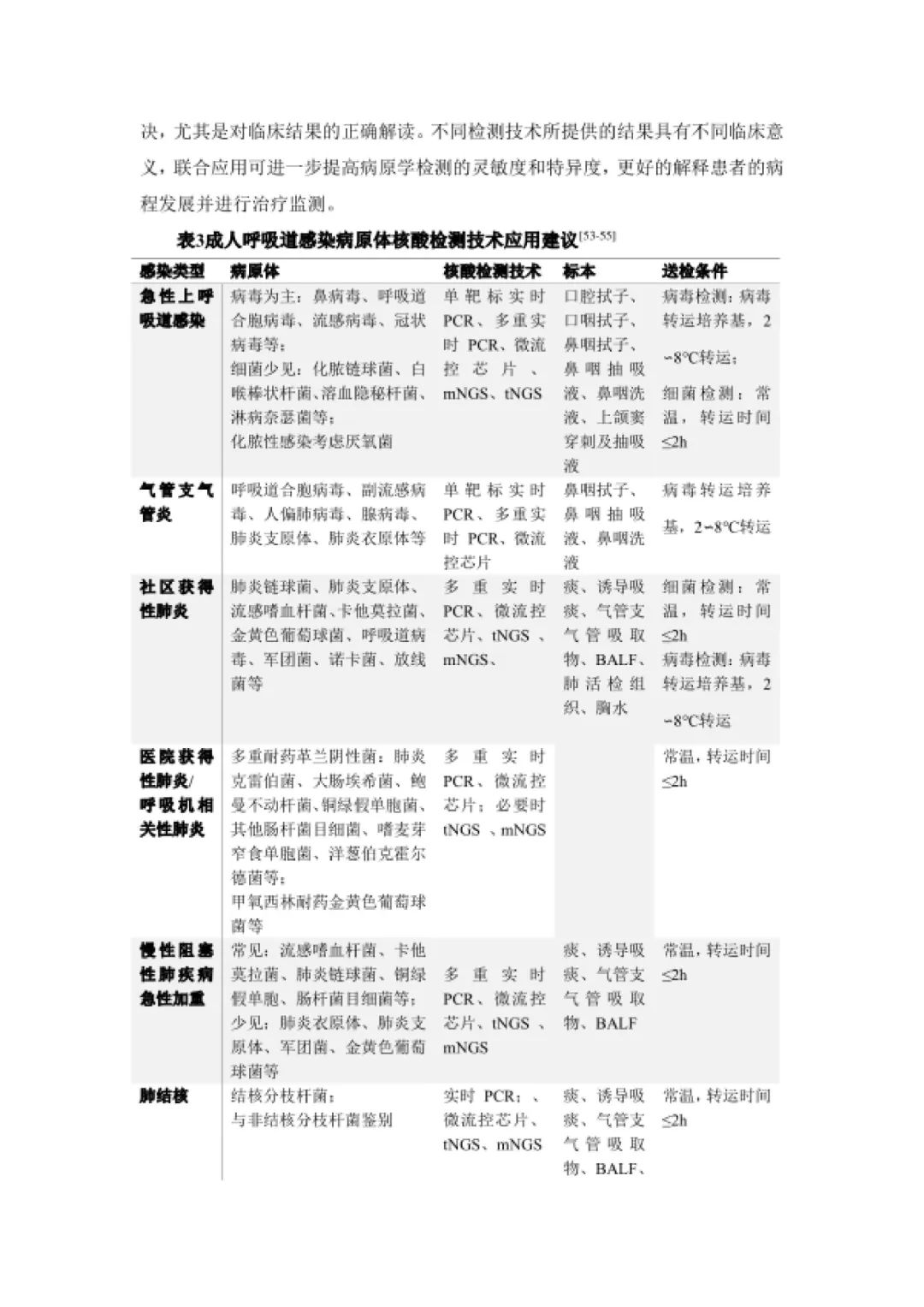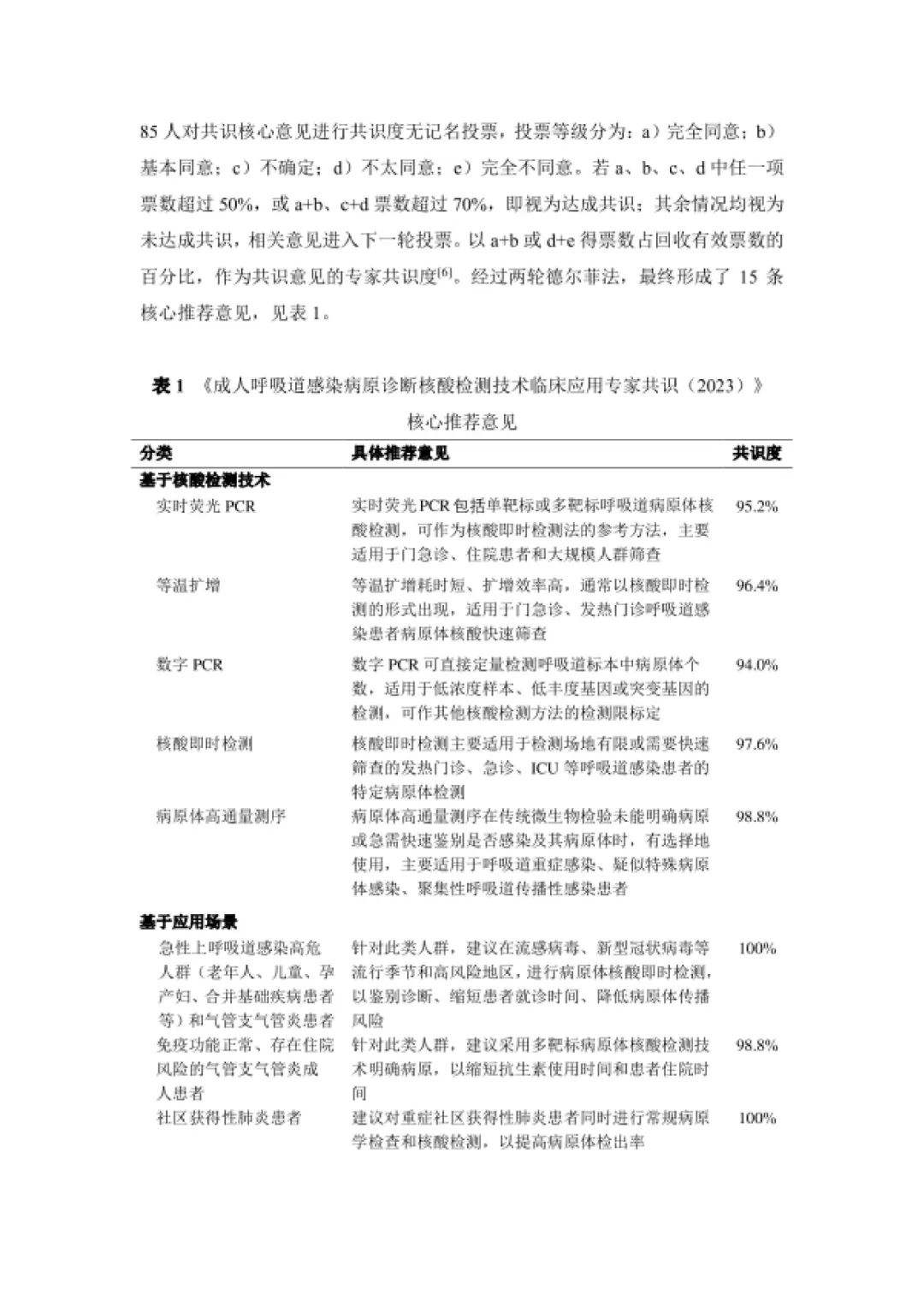 該共識(shí)參考國(guó)內(nèi)外指南及文獻(xiàn),分析了了實(shí)時(shí)熒光聚合酶鏈反應(yīng)技術(shù)、等溫?cái)U(kuò)增技術(shù)、數(shù)字PCR技術(shù)、核酸即時(shí)檢測(cè)技術(shù)和病原體高通量測(cè)序技術(shù)的臨床應(yīng)用場(chǎng)景、技術(shù)特點(diǎn)和性能驗(yàn)證要求,以及該類技術(shù)在成人急性上呼吸道感染、氣管支氣管炎、社區(qū)獲得性肺炎、醫(yī)院獲得性肺炎/呼吸機(jī)相關(guān)性肺炎、慢性阻塞性肺疾病急性加重、肺結(jié)核和免疫功能受損人群呼吸道感染中的應(yīng)用,以供臨床參考借鑒。