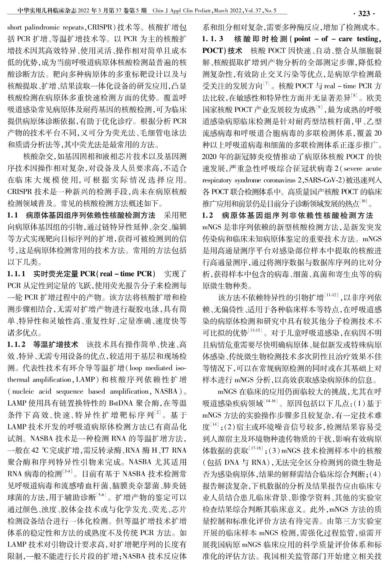 【摘要】急性呼吸道感染是兒童最常見的感染性疾病,嚴(yán)重威脅兒童生命健康。快速準(zhǔn)確的病原學(xué)診斷對(duì)于該類疾病的臨床診療及防控具有重要意義。核酸檢測(cè)方法因具有較高的靈敏度和特異性,得以快速地在臨床推廣應(yīng)用,成為呼吸道感染病原體診斷的主要方法。