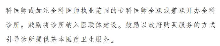 鼓勵(lì)醫(yī)生開辦門診,此前已有多地試點(diǎn)。《四川省「十四五」醫(yī)療衛(wèi)生服務(wù)體系規(guī)劃》中提到:鼓勵(lì)符合條件的全科醫(yī)師或加注全科醫(yī)師執(zhí)業(yè)范圍的?漆t(yī)師全職或兼職開辦全科診所。