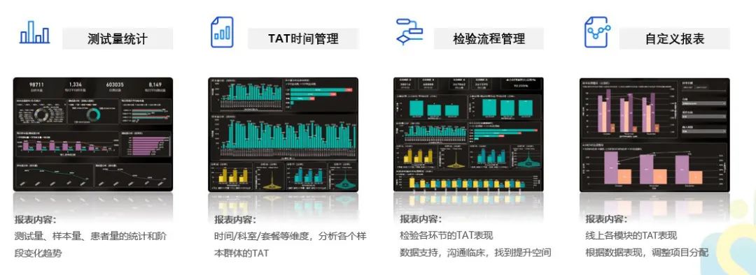 在實驗室自動化整體解決方案應(yīng)用的基礎(chǔ)上,檢驗科還引入了i-Board實時監(jiān)控系統(tǒng)、i-Report數(shù)據(jù)可視化報告系統(tǒng)以及AON實時質(zhì)控模塊。i-Board不僅可以在運行過程中監(jiān)控樣本流轉(zhuǎn),TAT情況,試劑信息等,還可以進行風(fēng)險預(yù)警,主動提示科室迅速采取行動;i-Report能集成數(shù)據(jù),進行全實驗室BI數(shù)據(jù)分析,提供可視化報告解讀并輔助實驗室管理者運維決策;AON實時質(zhì)控模塊能幫助臨床標本檢測結(jié)果實現(xiàn)實時、連續(xù)監(jiān)測檢測過程分析性能的質(zhì)量控制,有效補充質(zhì)控品室內(nèi)質(zhì)量控制。通過將智能化創(chuàng)新融入到實驗室多個工作場景中,以數(shù)字化技術(shù)推動實驗室發(fā)展,檢驗科智慧檢驗水平得到進一步提升。
