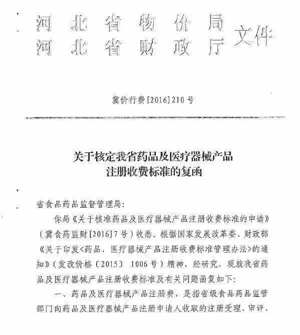 近日,河北省物價局、河北省財政廳出臺了《關(guān)于核定我省藥品及醫(yī)療器械產(chǎn)品注冊費收費標準的復(fù)函》(冀價行收﹝2016﹞210號)的文件,文件列出了河北省藥品和醫(yī)療器械產(chǎn)品的注冊收費標準。至此國內(nèi)已有12個省份開始收費。