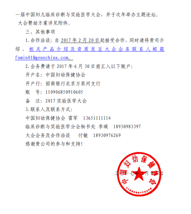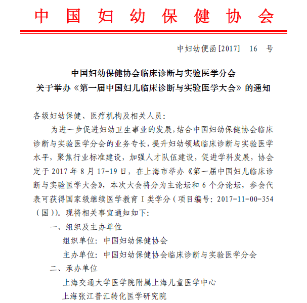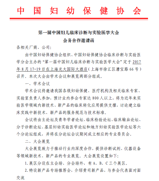 第一屆中國婦兒臨床診斷與實驗醫(yī)學(xué)大會會務(wù)合作邀請函