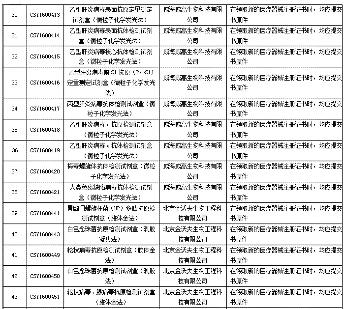 在這獲證的71個(gè)IVD中,有55個(gè)是到期換證,共涉及19家醫(yī)療器械生產(chǎn)企業(yè),其中,威海威高生物科技有限公司一家就有9個(gè)產(chǎn)品獲批換證。其余16個(gè)首次獲證的IVD則分別來(lái)自2家不同的醫(yī)療器械生產(chǎn)企業(yè),其中,僅長(zhǎng)春迪瑞醫(yī)療科技股份有限公司一家就有13個(gè)IVD首次獲得醫(yī)療器械注冊(cè)證。