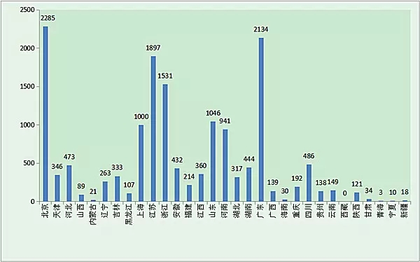 圖17.各省境內(nèi)第二類醫(yī)療器械注冊(cè)數(shù)據(jù)圖