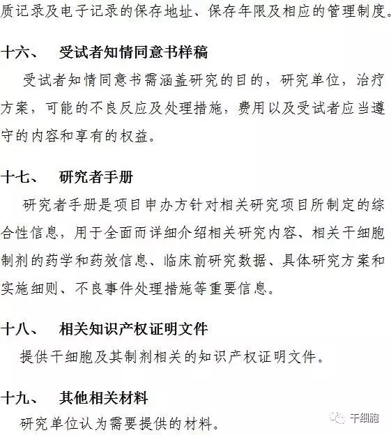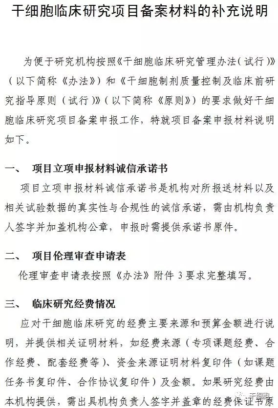 干細胞臨床研究項目備案材料的補充說明