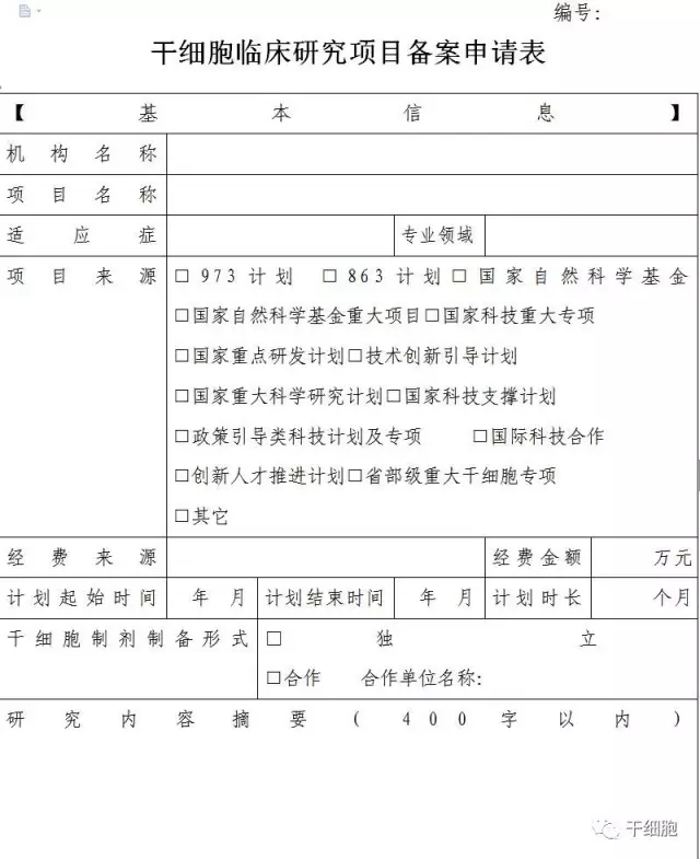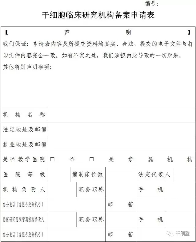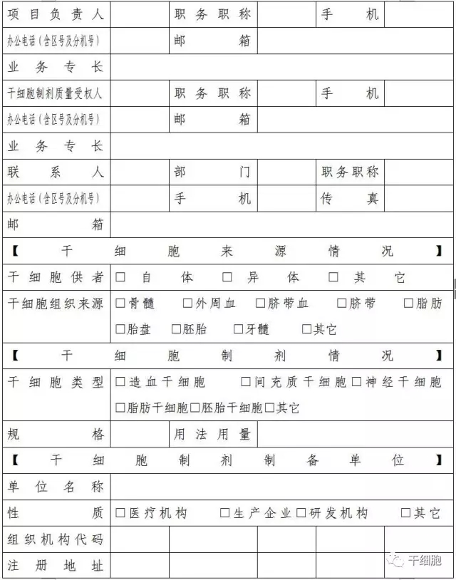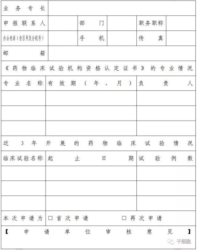 干細胞臨床研究機構(gòu)備案申請表