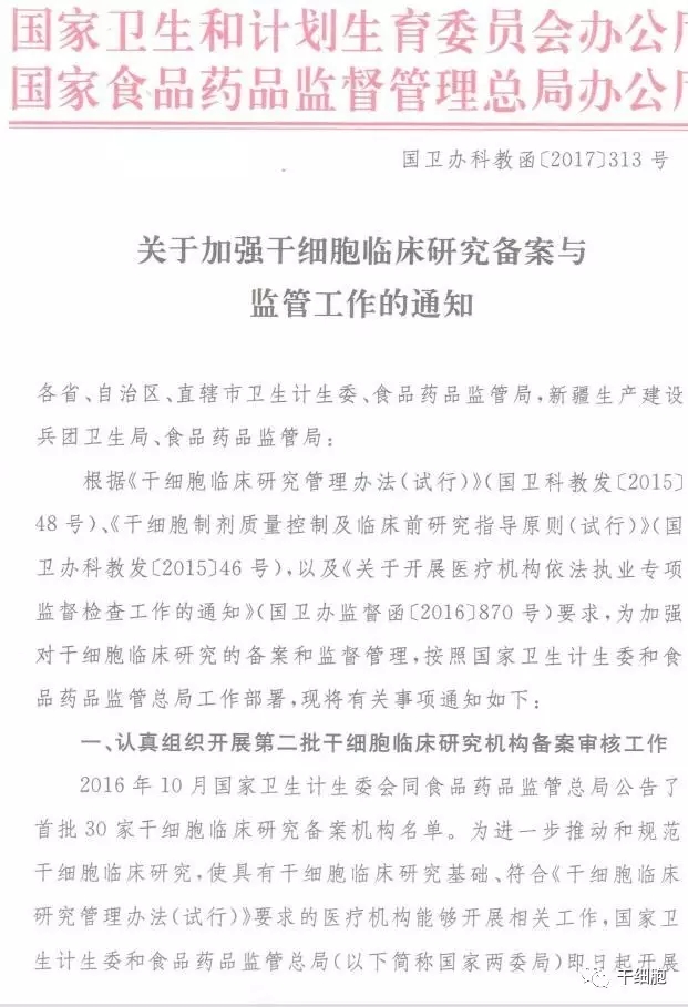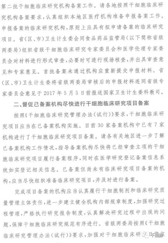 國家衛(wèi)計委:即日起開展第二批干細(xì)胞臨床研究機構(gòu)備案