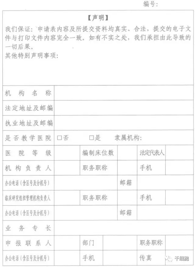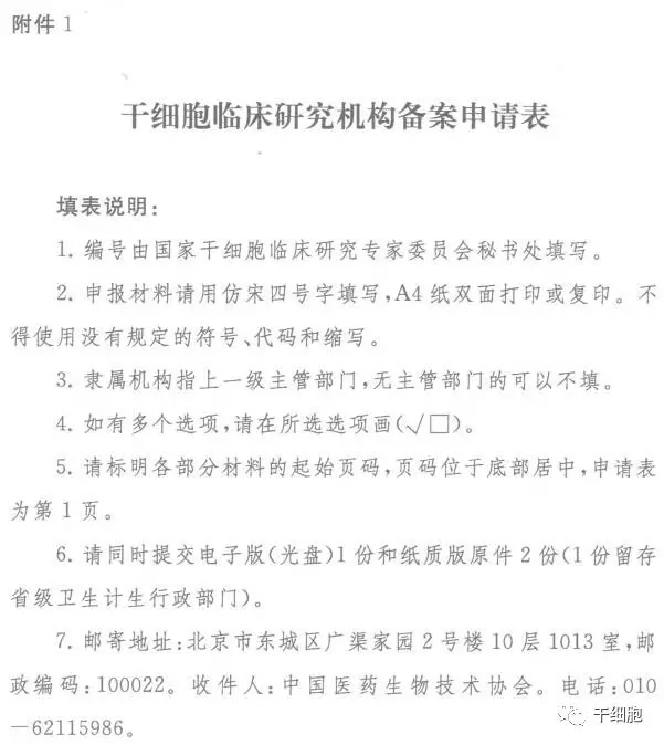 國家干細(xì)胞臨床研究項目備案材料的補充說明(附申請表)