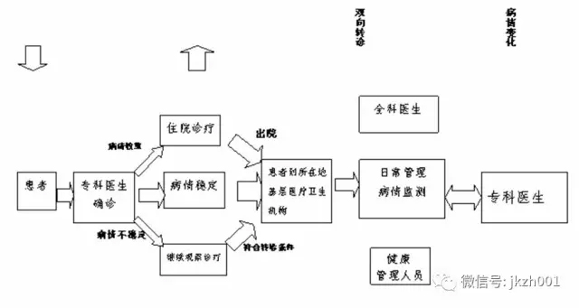 從這張分級(jí)診療流程圖當(dāng)中,我們大致可以總結(jié)出這么兩個(gè)方面的信息: