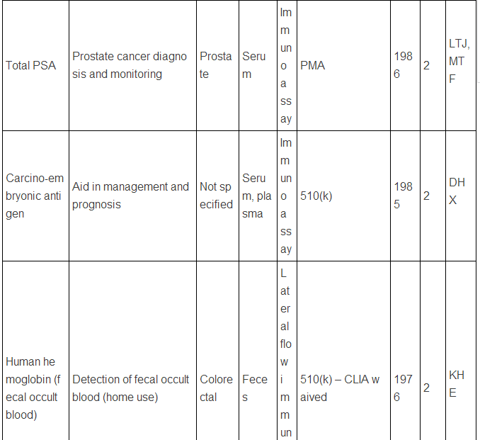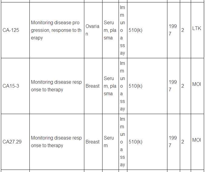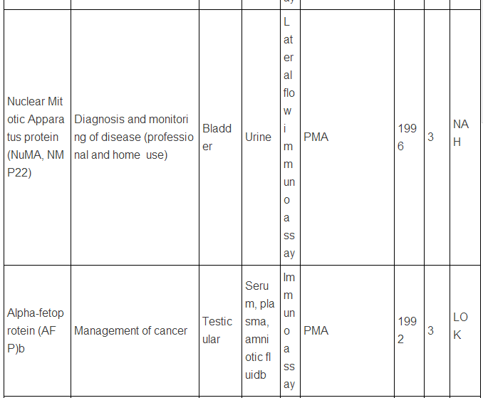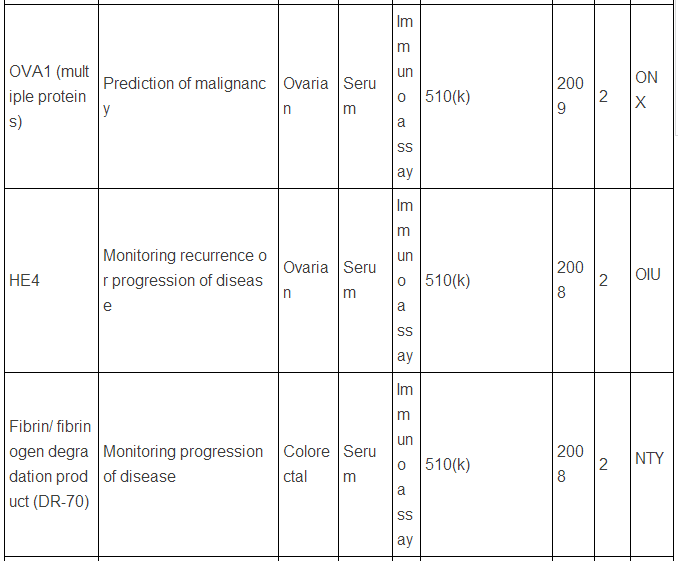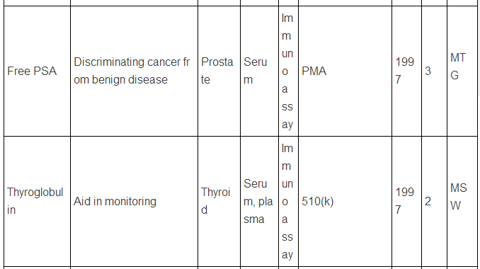 美國FDA批準(zhǔn)的現(xiàn)在用于臨床的蛋白腫瘤標(biāo)志物