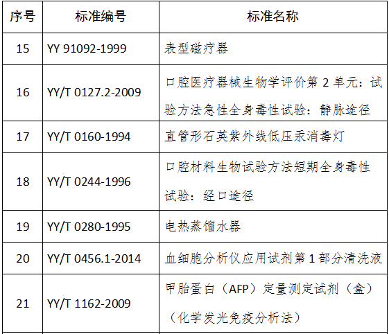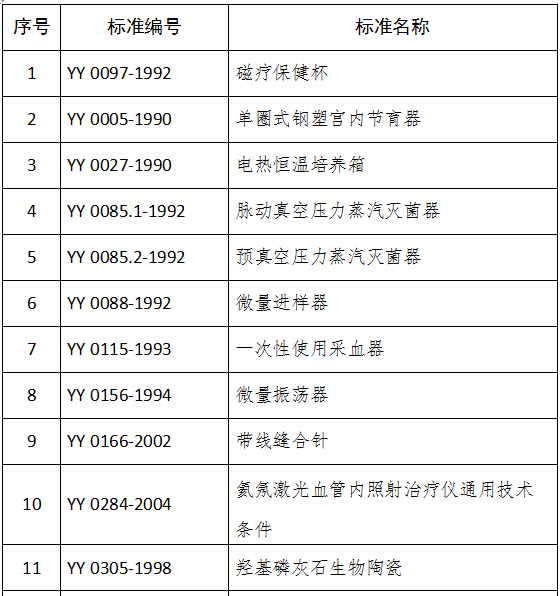 醫(yī)療器械行業(yè)標(biāo)準(zhǔn)擬廢止名單