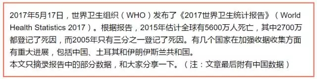 WHO發(fā)布2017世界衛(wèi)生統(tǒng)計報告(附中國數(shù)據(jù))