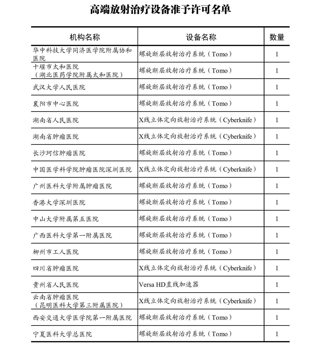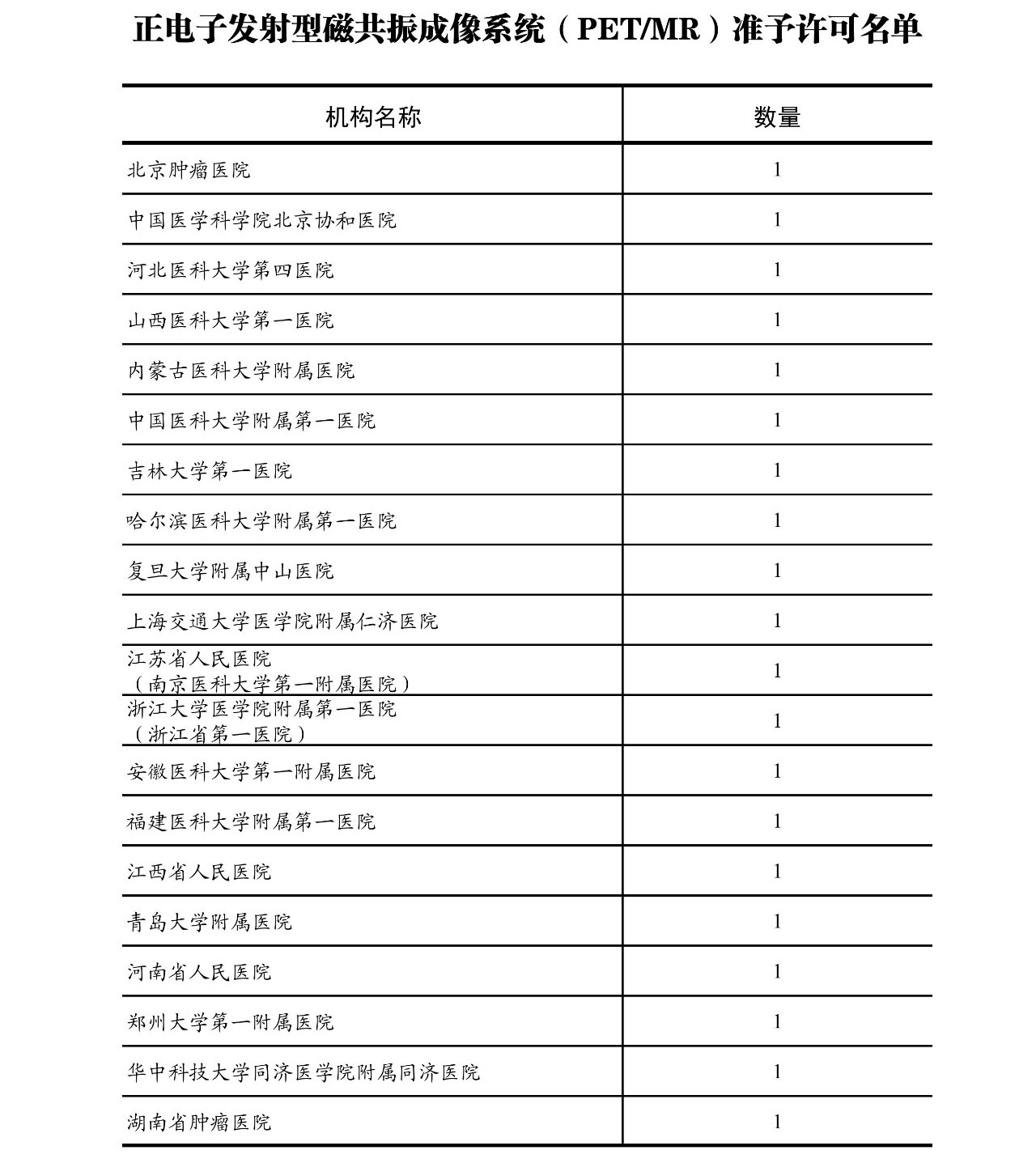 昨日,國(guó)家衛(wèi)健委發(fā)布關(guān)于2019年甲類(lèi)大型醫(yī)用設(shè)備配置許可的通告,審議通過(guò)質(zhì)子放射治療系統(tǒng)準(zhǔn)予許可名單、正電子發(fā)射型磁共振成像系統(tǒng)(PET/MR)準(zhǔn)予許可名單、高端放射治療設(shè)備準(zhǔn)予許可名單,詳細(xì)醫(yī)療機(jī)構(gòu)如下: