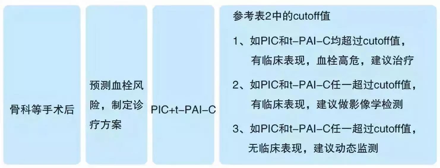 骨科等手術(shù)后:監(jiān)測PIC和t-PAI-C,并結(jié)合DD等指標(biāo)和臨床表現(xiàn)預(yù)測血栓風(fēng)險。