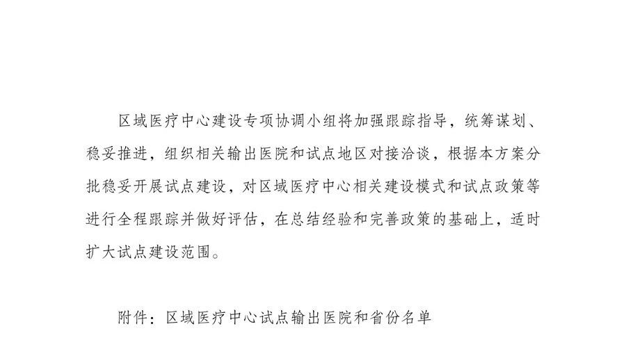 《方案》中明確了區(qū)域醫(yī)療中心建設的6個重點?萍8個試點地區(qū):