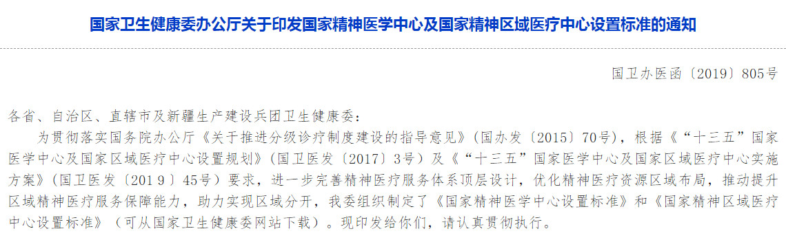 《國(guó)家精神區(qū)域醫(yī)療中心設(shè)置標(biāo)準(zhǔn)》