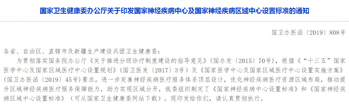 《國(guó)家神經(jīng)疾病區(qū)域中心設(shè)置標(biāo)準(zhǔn)》