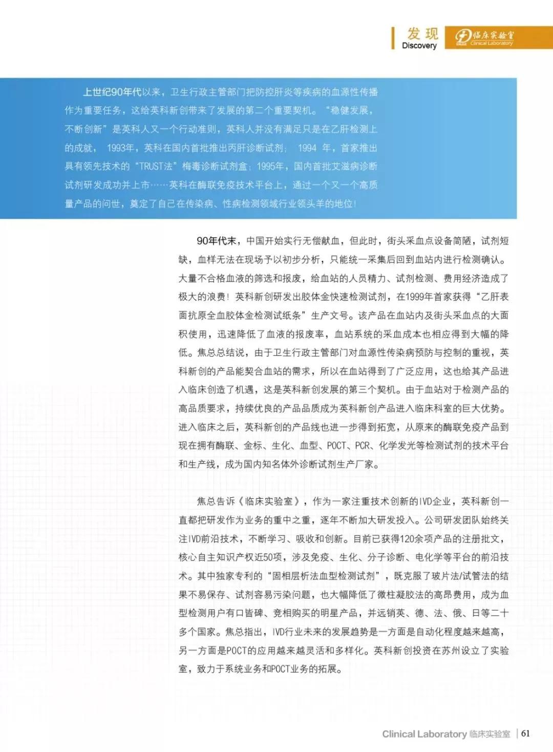 以下內(nèi)容摘自定向點金《臨床實驗室》2019年第11期,點擊圖片放大查看專訪全文: