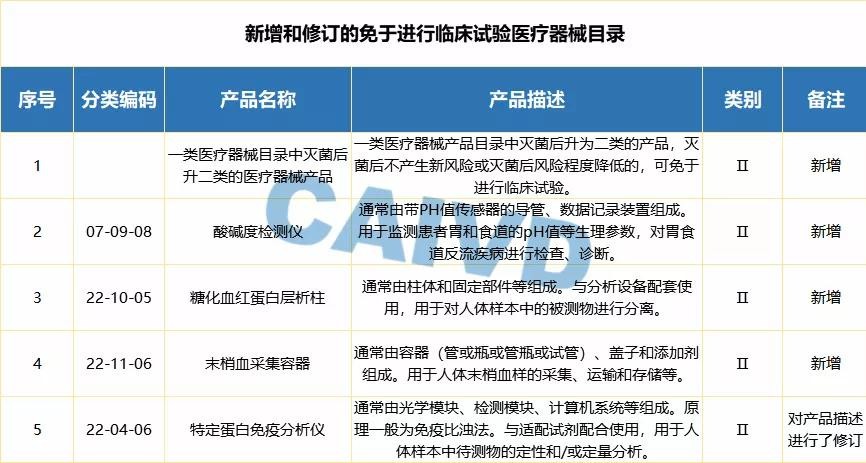 2019年12月新增和修訂的免于進(jìn)行臨床試驗(yàn)體外診斷儀器目錄
