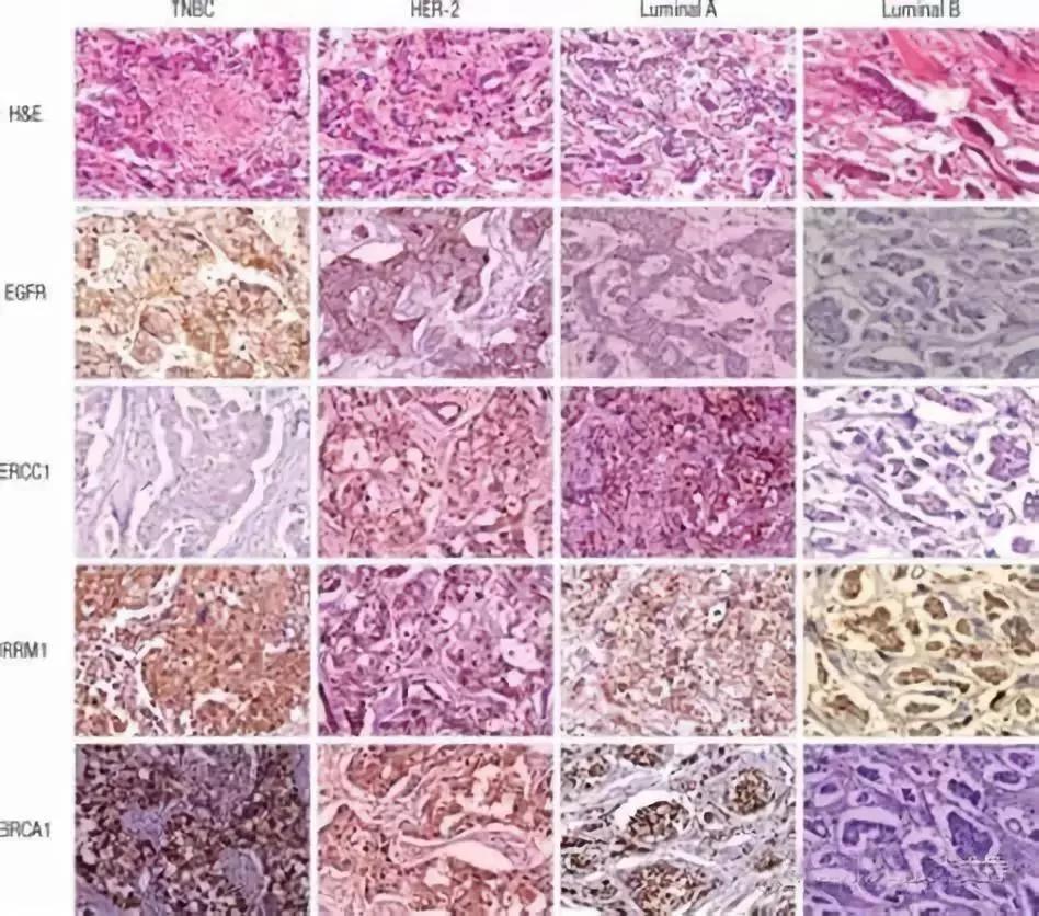 與治療及預(yù)后有關(guān)的標(biāo)記物主要分以下為三類:(1)腫瘤基因標(biāo)記物:如癌基因C-erbB2、c-myc、P53蛋白等,卵巢上皮性癌中P53的過表達(dá)與腫瘤的擴散、分化、術(shù)后殘存癌灶呈正相關(guān);乳腺癌中表達(dá)C-erbB2的浸潤性癌患者預(yù)后差;肺癌中突變型P53基因蛋白表達(dá)增高,PTEN基因表達(dá)減弱,提示腫瘤預(yù)后不良。(2)細(xì)胞增殖性標(biāo)記物:腫瘤細(xì)胞增生是否活躍直接影響者臨床的治療與預(yù)后,如表皮生長因子受體(EGFR)、Ki-67、PCNA、cycling等可對腫瘤細(xì)胞的增生做出評價,表達(dá)指數(shù)越高,表明其增殖指數(shù)越活躍,惡性度增高,預(yù)后不良,其中以惡性淋巴瘤、乳腺癌較為明顯;在對乳腺癌的研究中發(fā)現(xiàn)Ki-67、EGFR陽性者,淋巴結(jié)轉(zhuǎn)移率高,并與激素受體的表達(dá)呈負(fù)相關(guān)。(3)類固醇激素受體:如雌激素受體(ER)、孕激素受體(PR)等,應(yīng)用最為廣泛的是子宮內(nèi)膜癌及乳腺癌,如對乳腺癌中ER、PR的檢測,有助于決定臨床治療中是否需要加入內(nèi)分泌激素阻斷治療,并能判斷預(yù)后,ER及PR陽性表達(dá)、原癌基因(C-erbB-2)陰性表達(dá)病例對三苯氧胺等激素治療反應(yīng)良好,而ER、PR、C-erbB-2三種抗體均陰性(TNBC)患者采用三苯氧胺可能意義不大。