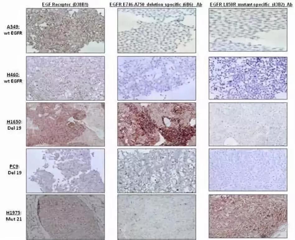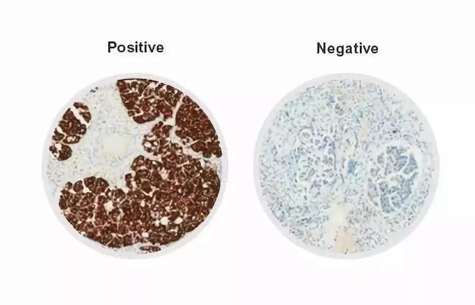 通過特定抗體標(biāo)記出細(xì)胞內(nèi)相應(yīng)的抗原成分,來判定細(xì)胞的屬性,確定腫瘤的來源。如細(xì)胞角蛋白(CK)是上皮性標(biāo)記,CK陽性提示腫瘤為上皮源性腫瘤;降鈣素抗體是甲狀腺髓樣癌特有的標(biāo)記;甲狀腺球蛋白(Tg)陽性提示是甲狀腺濾泡性癌;前列腺特異性抗原(PAS)僅見于前列腺上皮;膠質(zhì)纖維酸性蛋白(GFAP)陽性則提示膠質(zhì)腫瘤;CD20和CD79a陽性則提示B細(xì)胞淋巴瘤;平滑肌肌動蛋白(Actin)陽性提示腫瘤為平滑肌源性;胃腸道間質(zhì)瘤中原癌基因蛋白產(chǎn)物CD117陽性;血管源性腫瘤中內(nèi)皮細(xì)胞標(biāo)記物CD34陽性等等。